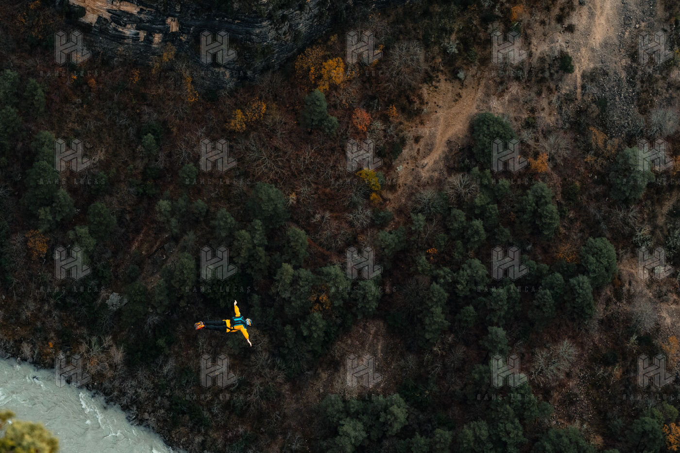 A man base jumping from a cliff - Moustier Sainte Marie - France - PART 1