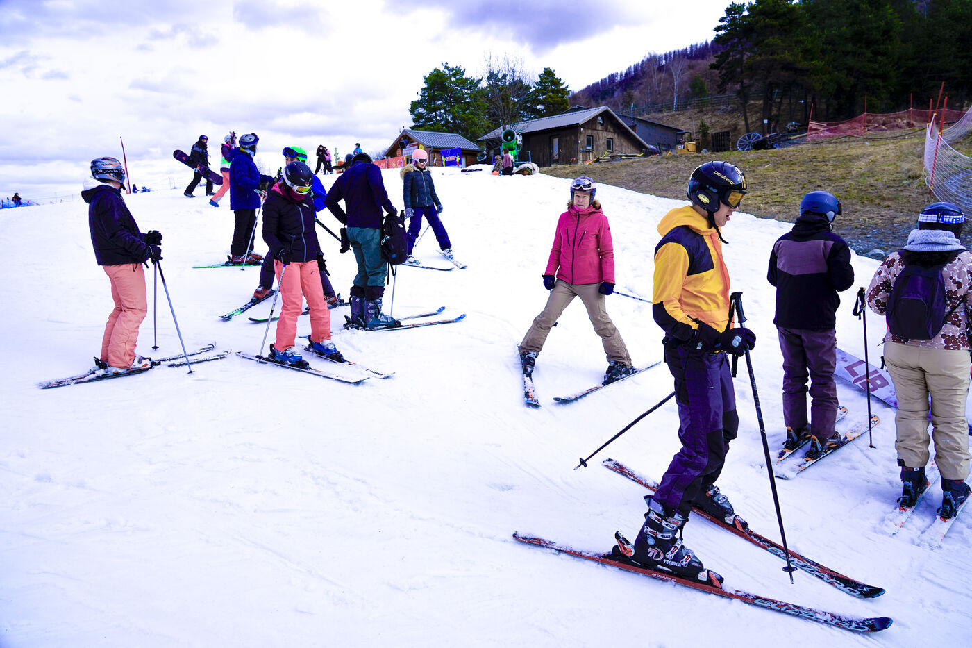France, 22.02.2025, Illustration d'une station de ski, La station de ski de Montclar, animée par des skieurs, des snowboarders et des familles profitant des pistes enneigées et des chalets chaleureux.