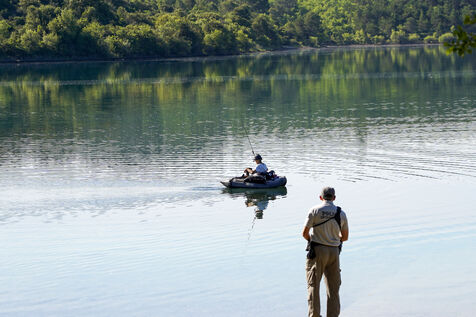 OFB Agent from Behind, This image shows the logo of the French Biodiversity Agency (OFB) on the vest of an official at an OFB training center in the Alpes-de-Haute-Provence department. The agent is taking part in a patrol around the Verdon Regional Nature Park, ensuring that the natural environment is not disturbed by tourists or unauthorized camping. The area has previously been affected by several fires linked to tourist activity. France on May 31, 2025.
