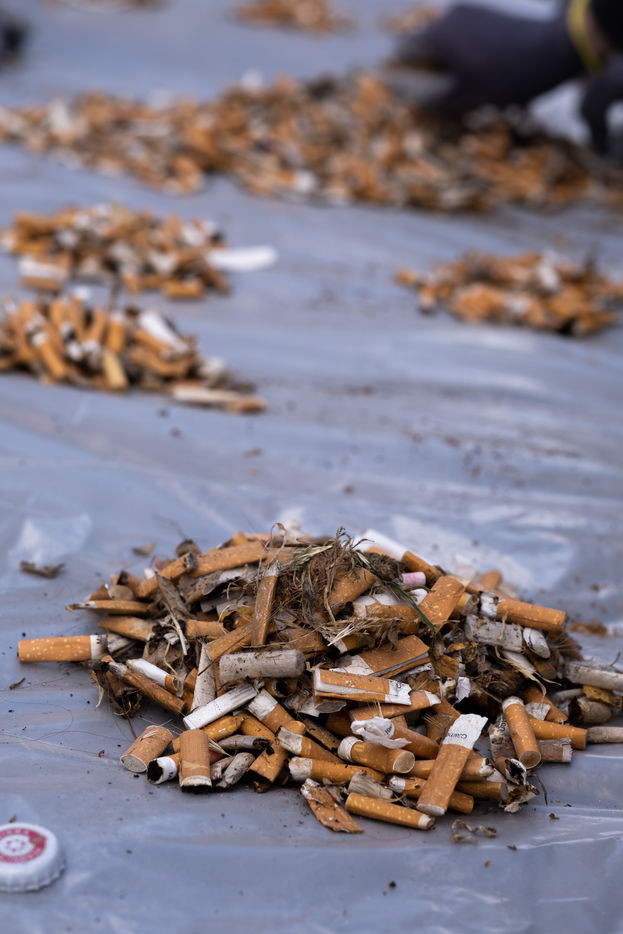 Cigarette butt collection and cleantag operation with Surfrider