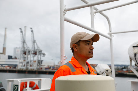 Darius ne quitte pas le port des yeux. Capitaine à bord, il est seul responsable sans avoir le contrôle de toutes les manoeuvres. Andrew attend, surveille, passe dans la cuisine où des crevettes cuisent pour le déjeuner.