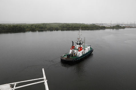Aller assez vite, un paquebot géant nous suit de près, mais pas trop, le remorqueur y veille.