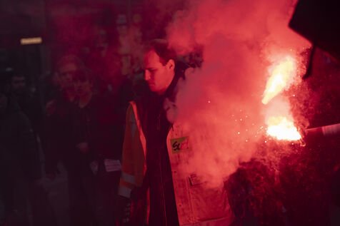 Manifestation intersyndicale contre la réforme des retraites entre la Place de l'Opéra et la Place de la Bastille.