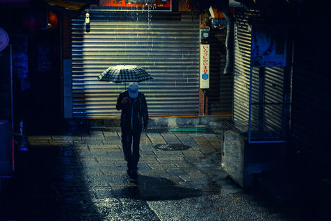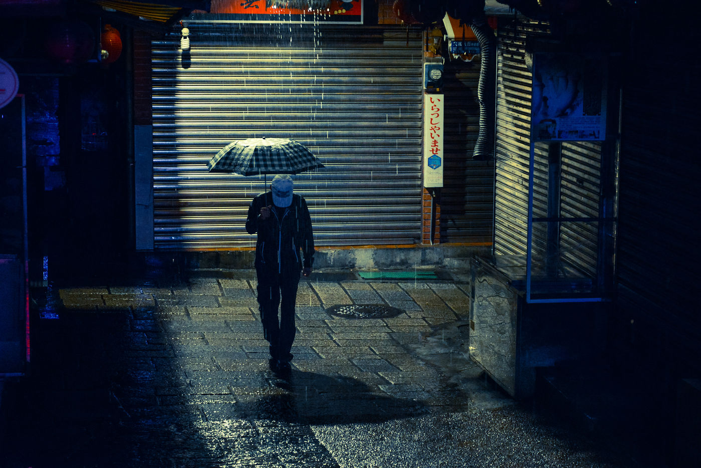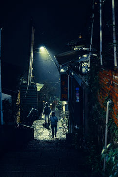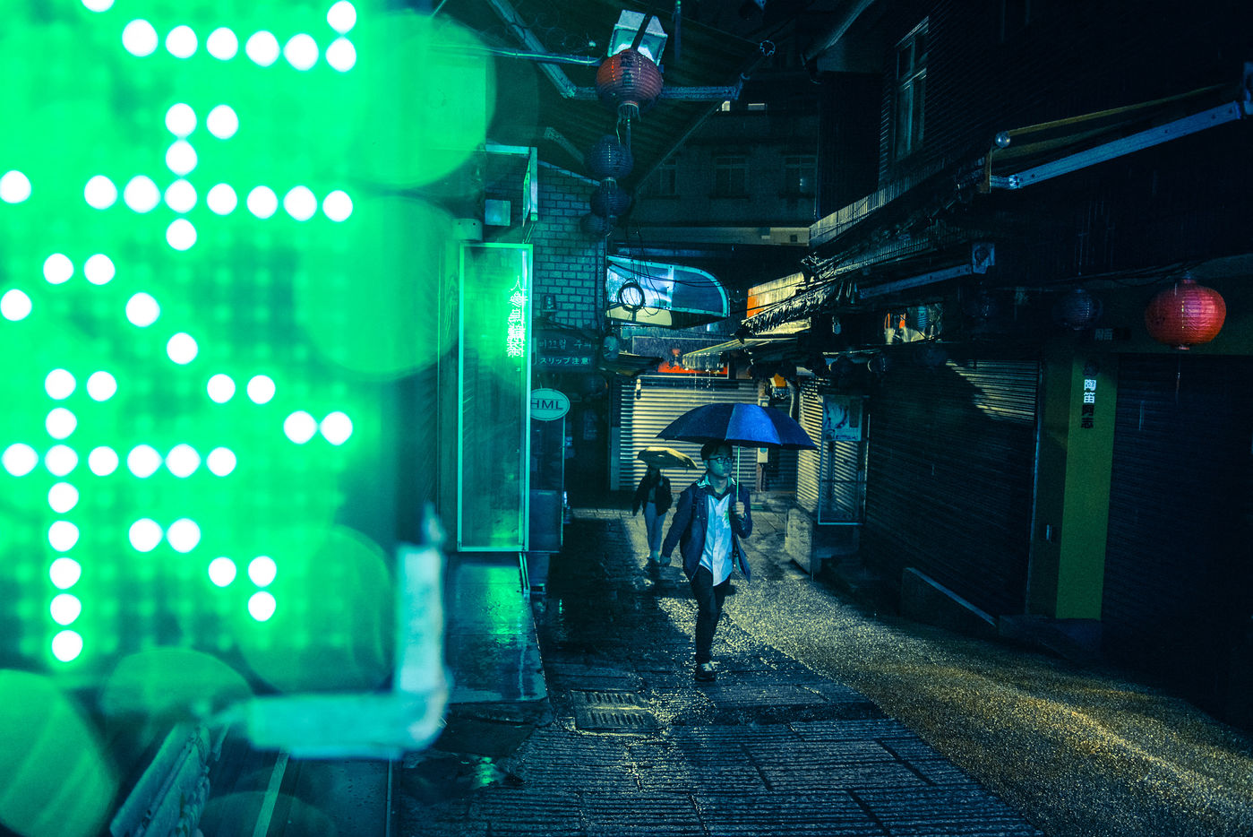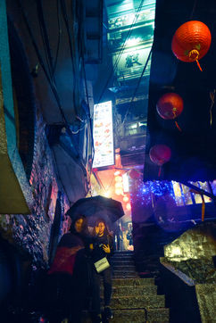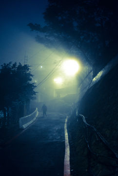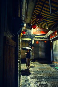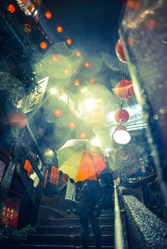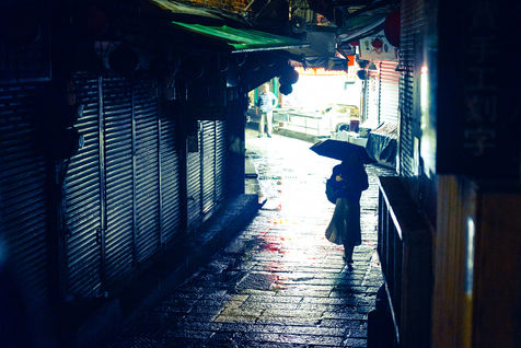 Jiufen, Taiwan. Repère escarpé et fastueux des chercheurs d'or du siècle dernier. La brume tombe sur la ville à flanc de montagne. Entre drame et rêverie, les âmes perdues errent dans ses ruelles, en quête d'une lumière aussi salvatrice que trompeuse.
