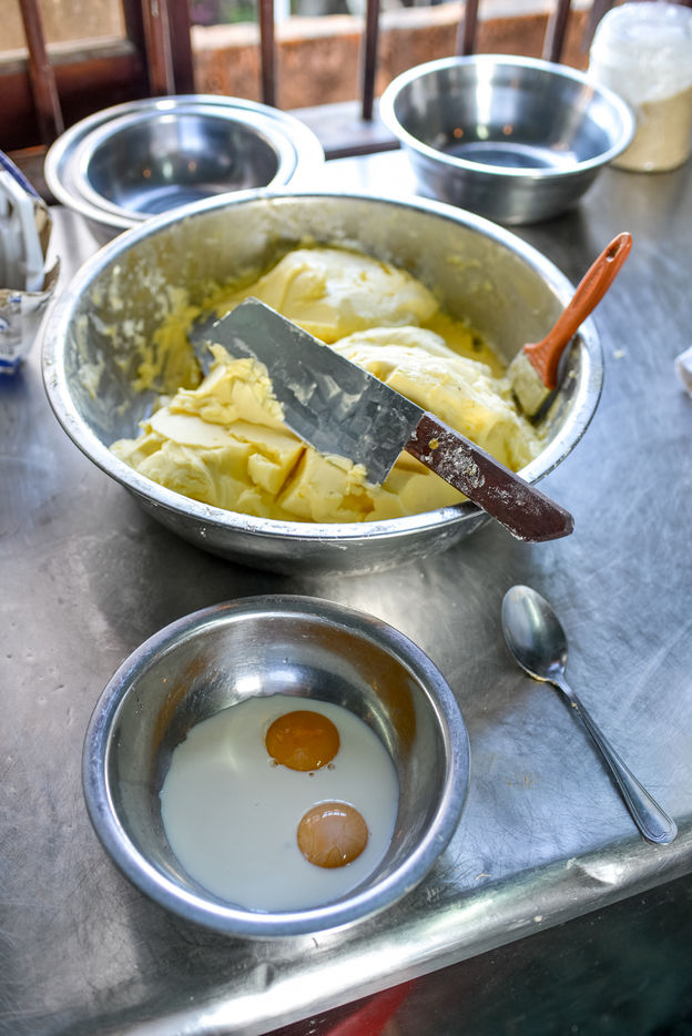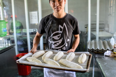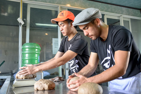 Après ces 4 mois à Hoi An, Andres finit par rependre sa Honda win 100cc pour rallier Hanoi où, finalement, il ne s'imagine pas vivre. Retour à la case Hoi An avec l'idée, cette fois-ci, de faire du pain. C'est là qu'il pousse la même porte que moi, qu'il dit au patron du lieu, Gordon, qu'il veut faire du pain, qu'il est prêt à nettoyer la boulangerie s'il le faut, et que dès le lendemain matin, à 6h, il se retrouve au 1er étage de la boutique pour apprendre auprès des deux boulangers alors en place. « J'ai commencé par la base : peser, pétrir, laisser reposer, diviser, façonner, faire lever, couper, cuire, laisser refroidir. Ensuite, cela m'a pris 3 mois pour comprendre comment la pâte réagissait, en fonction de la température, de la météo, des ingrédients utilisés, du timing. Une fois tout cela assimilé, j'étais prêt à « jouer » un peu. »