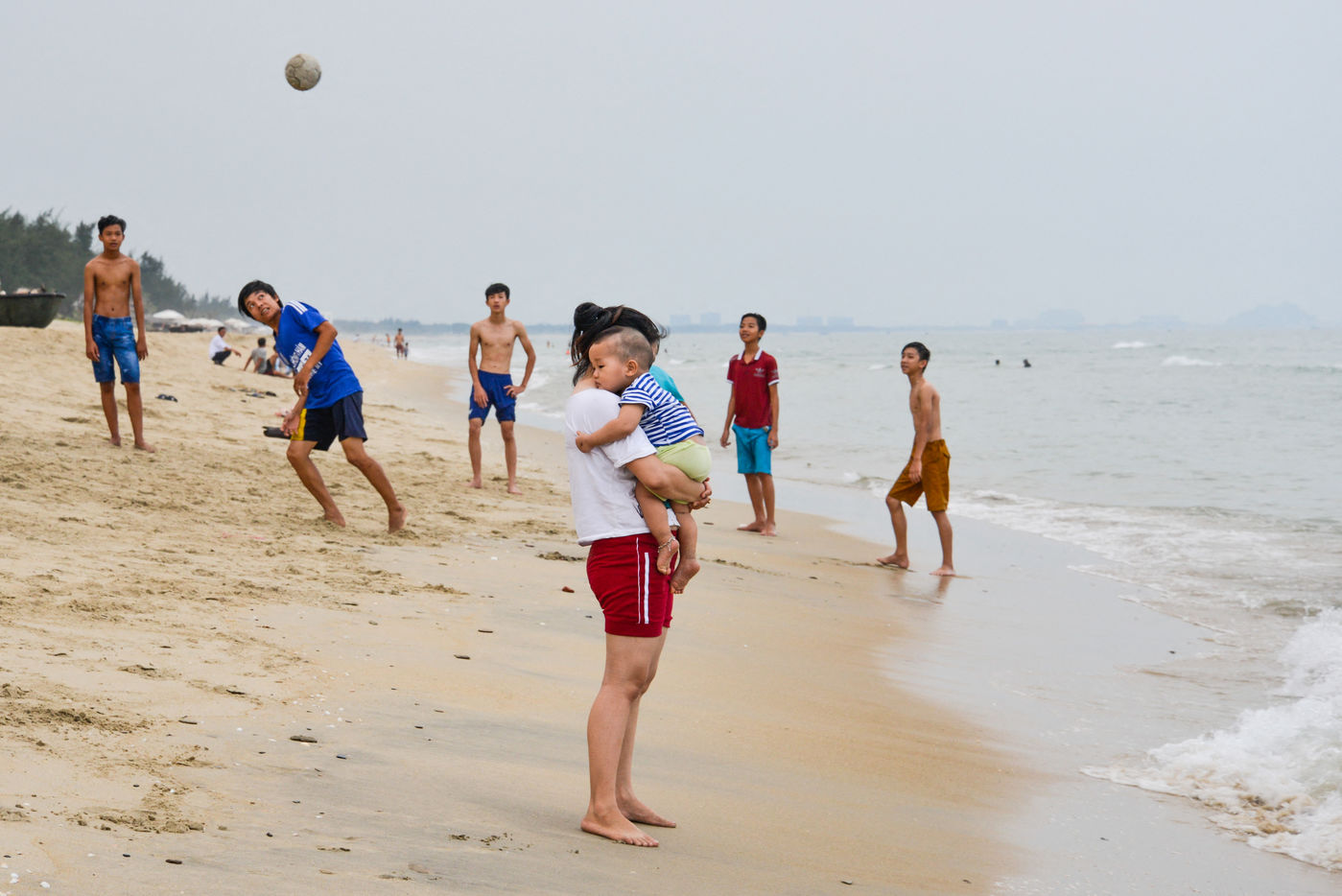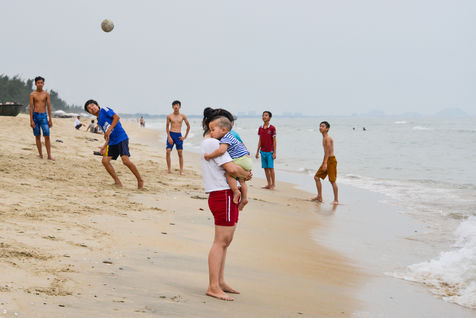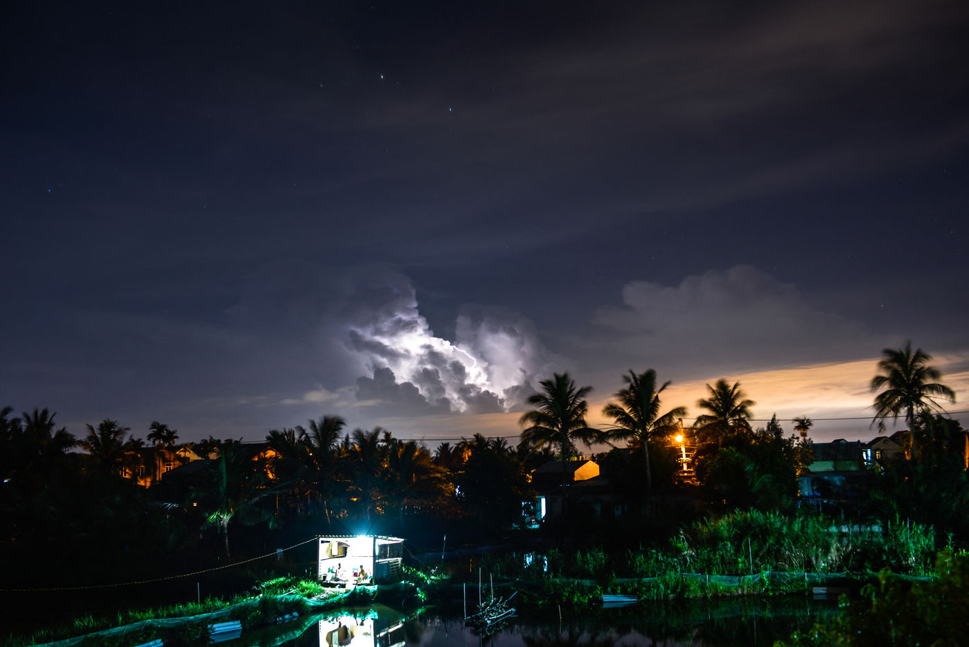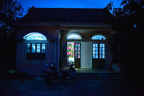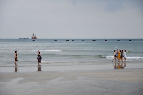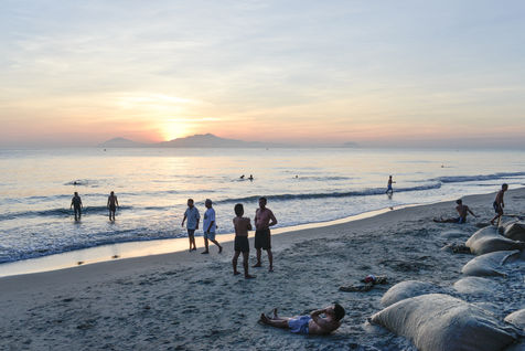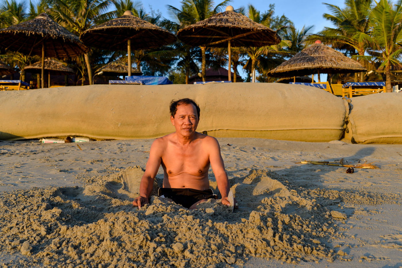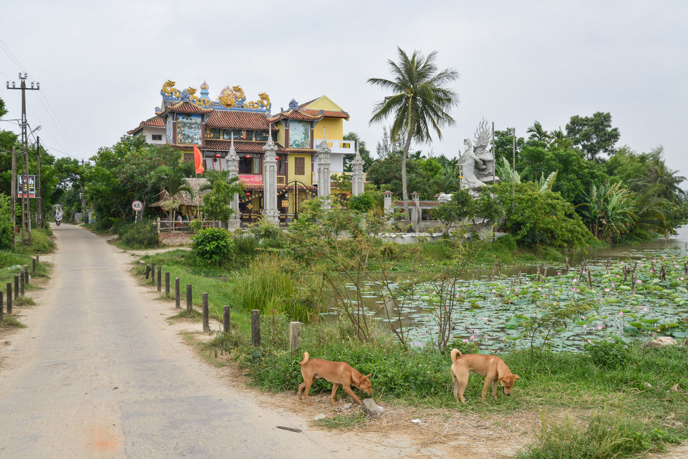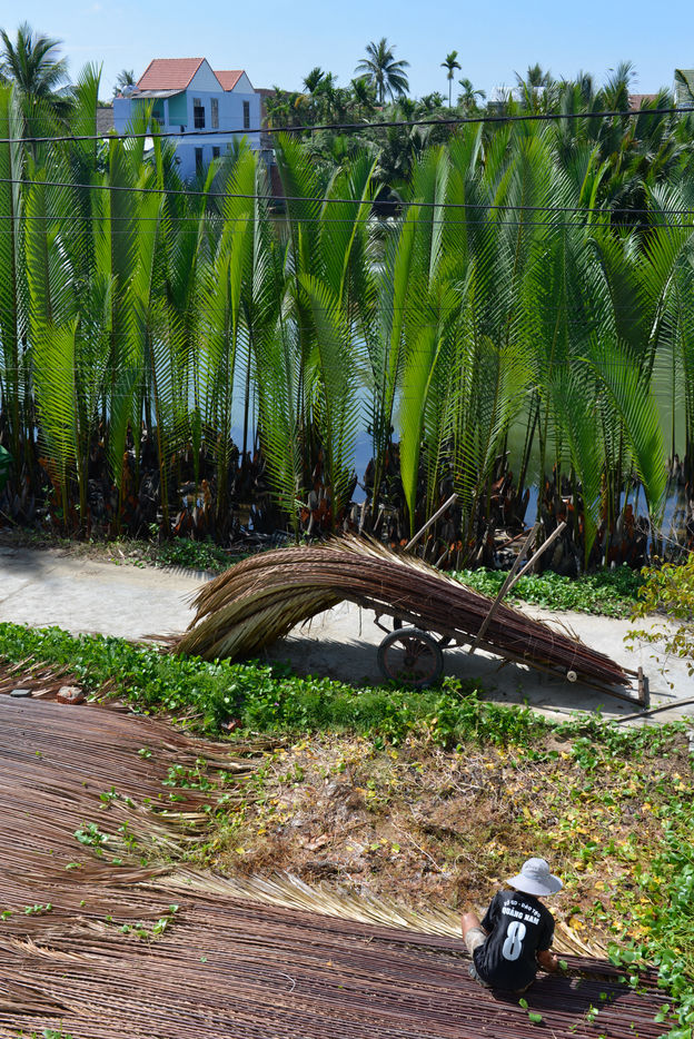 J'ai bien sûr traversé cet aimant esthétique à plusieurs reprises au cours de ces deux semaines mais je l'ai rapidement oublié. Mon attention s'est translatée, à vélo, à pieds, en scooter, à la nage... Mon regard s'est tourné vers l'extérieur, vers la périphérie de la cité : vers ses campagnes où l'on se marie à même la terre et collectionne la paille ; vers son singulier cimetière Dia Duy aux tombes hors sol et aux couleurs vivifiantes ; vers son incroyable et craquant pont de bambou long de 320 mètres ; vers ses artisans minutieux créateurs de rêves, de tapis volants et autres bateaux de pêche ; vers ses routes de folie où défile la vie en cinémascope ; vers sa grande voisine Da Nang de béton, de dragon, d'impulsions et d'explosions ; vers ses crépuscules indiscrets et constructifs ; vers sa plage de Cua Dai - menacée car en voie d'érosion immobilière -, à 5h55, où les matinaux viennent admirer le lever du soleil sur la Mer de Chine méridionale, où les amitiés se scellent, où l'on s'exerce à la vie à son rythme, où l'on prépare sa prochaine évasion maritime ; et encore vers ses rizières gorgées d'eau et fraîchement ensemencées pour la deuxième récolte de riz ; vers sa plage d'An Bang où l'on se baigne en masse, se prélasse, et grignote en famille avant que le ciel, généreux, esthète et puissant, ne nous joue sa dernière symphonie !