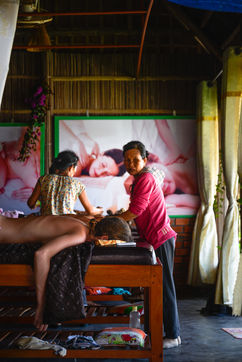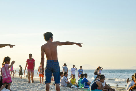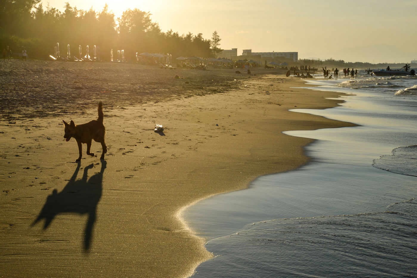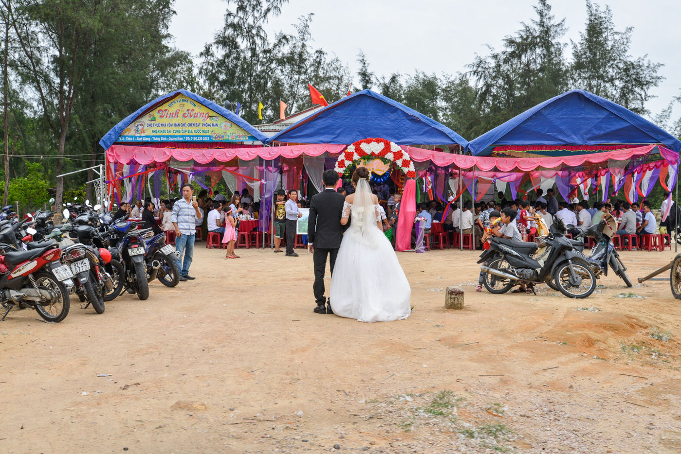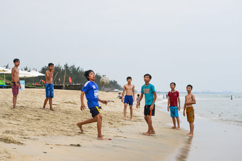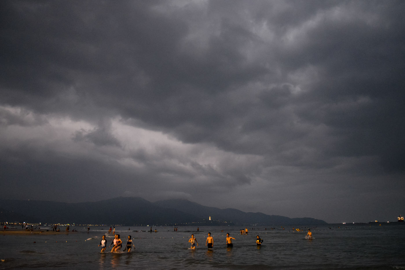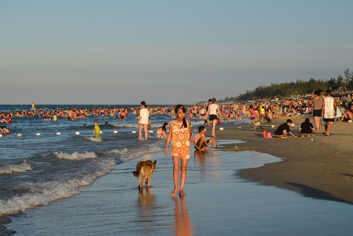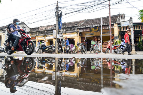 J'ai bien sûr traversé cet aimant esthétique à plusieurs reprises au cours de ces deux semaines mais je l'ai rapidement oublié. Mon attention s'est translatée, à vélo, à pieds, en scooter, à la nage... Mon regard s'est tourné vers l'extérieur, vers la périphérie de la cité : vers ses campagnes où l'on se marie à même la terre et collectionne la paille ; vers son singulier cimetière Dia Duy aux tombes hors sol et aux couleurs vivifiantes ; vers son incroyable et craquant pont de bambou long de 320 mètres ; vers ses artisans minutieux créateurs de rêves, de tapis volants et autres bateaux de pêche ; vers ses routes de folie où défile la vie en cinémascope ; vers sa grande voisine Da Nang de béton, de dragon, d'impulsions et d'explosions ; vers ses crépuscules indiscrets et constructifs ; vers sa plage de Cua Dai - menacée car en voie d'érosion immobilière -, à 5h55, où les matinaux viennent admirer le lever du soleil sur la Mer de Chine méridionale, où les amitiés se scellent, où l'on s'exerce à la vie à son rythme, où l'on prépare sa prochaine évasion maritime ; et encore vers ses rizières gorgées d'eau et fraîchement ensemencées pour la deuxième récolte de riz ; vers sa plage d'An Bang où l'on se baigne en masse, se prélasse, et grignote en famille avant que le ciel, généreux, esthète et puissant, ne nous joue sa dernière symphonie !