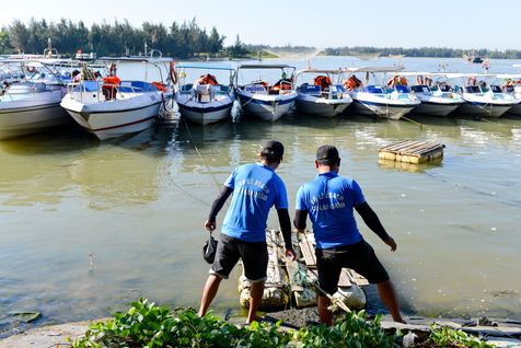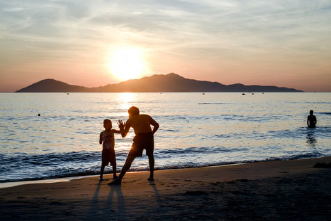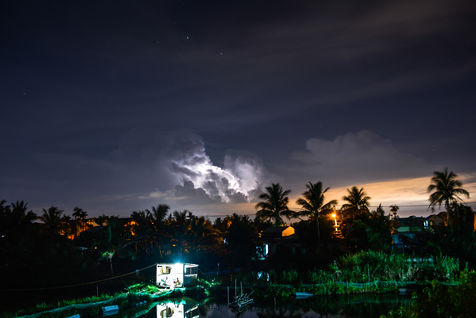 Of course, I crossed this aesthetic magnet several times during these two weeks but I quickly forgot about it. My attention has shifted, by bike, on foot, by scooter, swimming... My eyes turned to the outside, to the outskirts of the city: to its countryside where people marry on the ground and where we collect straw; to its unique Dia Duy cemetery with its above-ground tombs and invigorating colours; to its incredible and crackling bamboo bridge 320 metres long ; to its meticulous craftsmen who create dreams, flying carpets and other fishing boats; to its roads of madness where life passes in cinemascope; to its great neighbour Da Nang of concrete, dragon, impulsions and explosions; to its indiscreet and constructive twilight; to its beach at Cua Dai - threatened because it is undergoing real estate erosion - at 5:55 am, where early risers come to admire the sunrise on the South China Sea, where friendships are sealed, where people practice life at their own pace, where one prepares his next maritime escape; and again to its waterlogged and freshly seeded paddies for the second rice harvest; to its An Bang beach where you can swim, relax, and nibble with your family before the sky, generous, aesthetic and powerful, plays its last symphony for us!