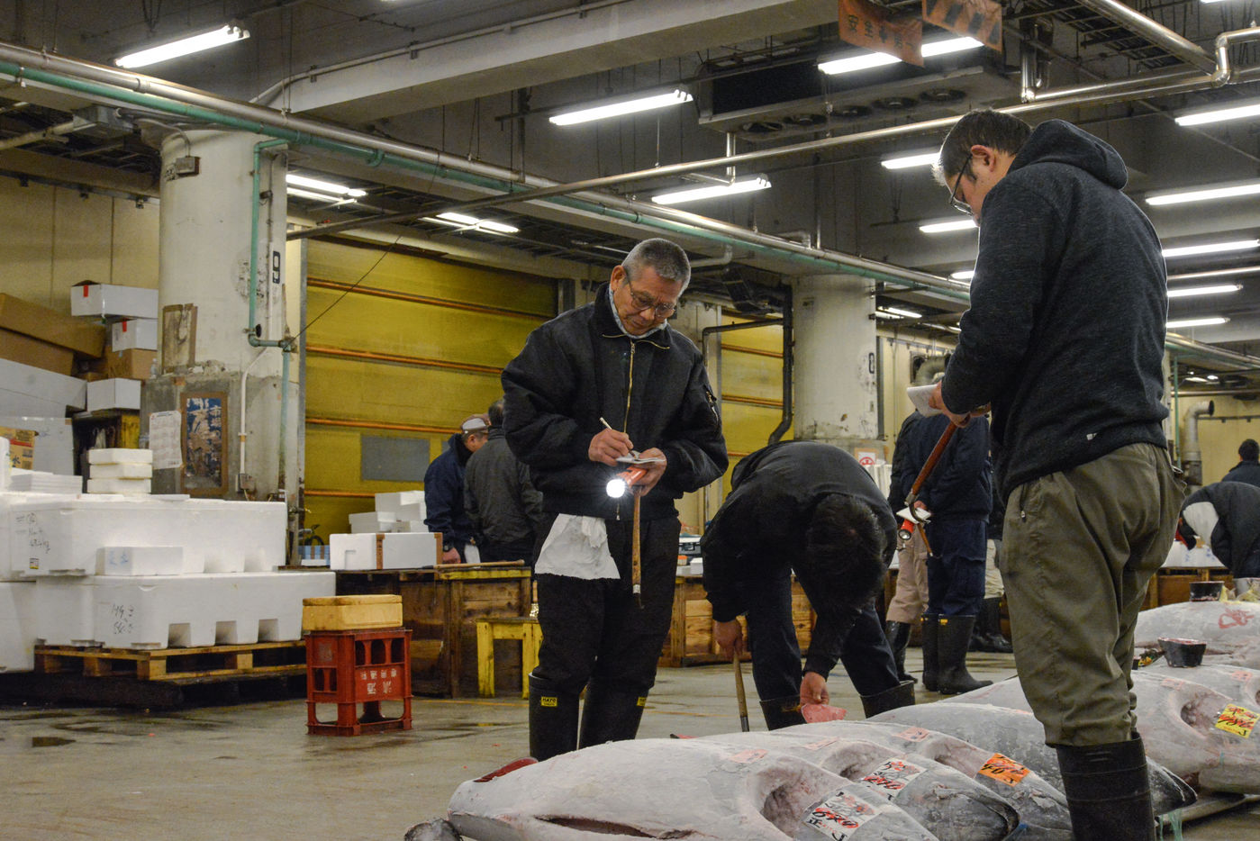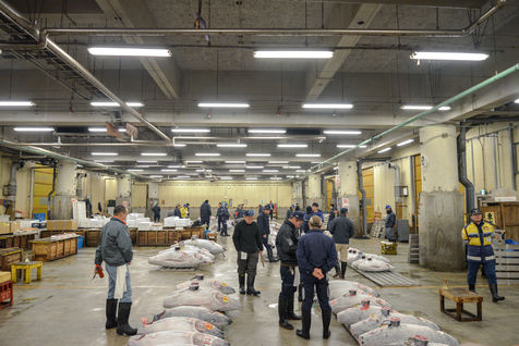 Japan, Tokyo, Tourism, January 2017 - Early morning report at Tsukiji, the world's largest fish market, at a tuna auction. Created in 1935, the Tuskiji market closed its doors definitively on October 6 and reopened on October 11 in Toyosu, in a less picturesque place but with much more modern hygienic standards.