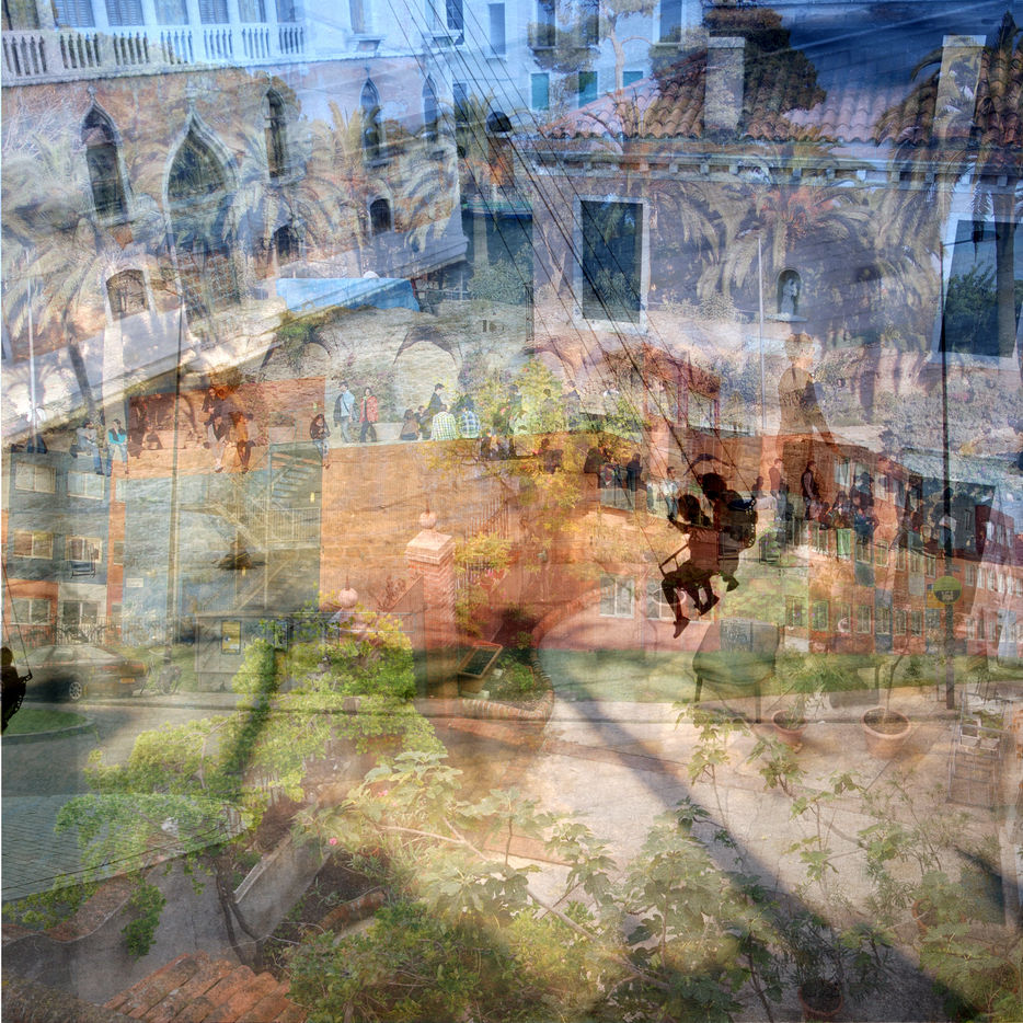 What if I superimposed these particular images to create only one, a Photonym? What if, in addition, to keep the oblivion and the dream alive, I altered their presence by methodically playing on their transparency? An artificial, unpredictable and poetic dialogue is being created between Kyoto, Chicago and Valparaiso; this actor, these onlookers and this footballer; this forest, this desert and these summits... While in my eyes, each detail, each element of these pictures thus aggregated is linked to precise and precious memories, dated and localized, for all the others, they are imaginary, strange, indicial and timeless worlds that are gradually discovered, like an invitation to internal journeys and fertile affabulations...