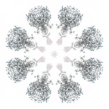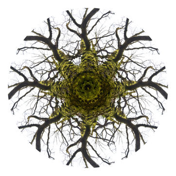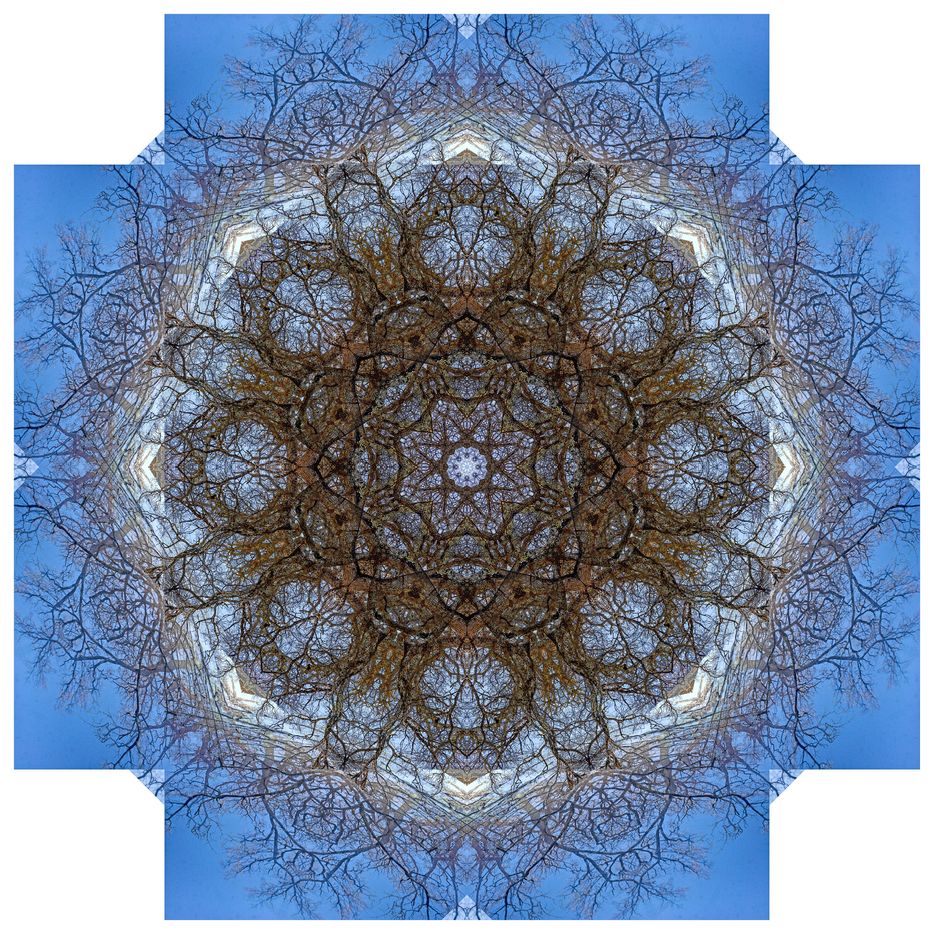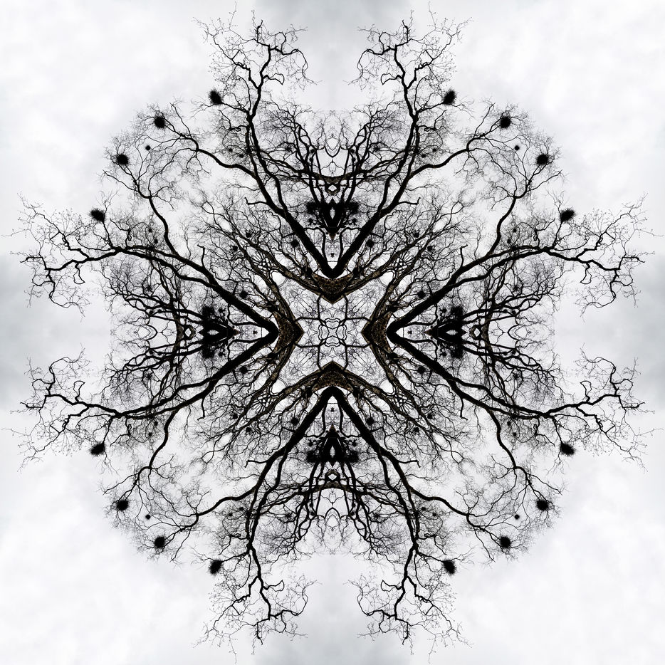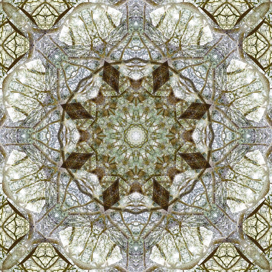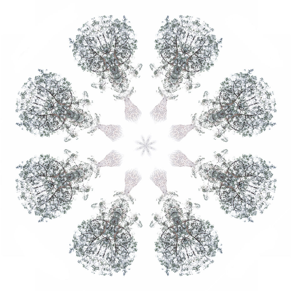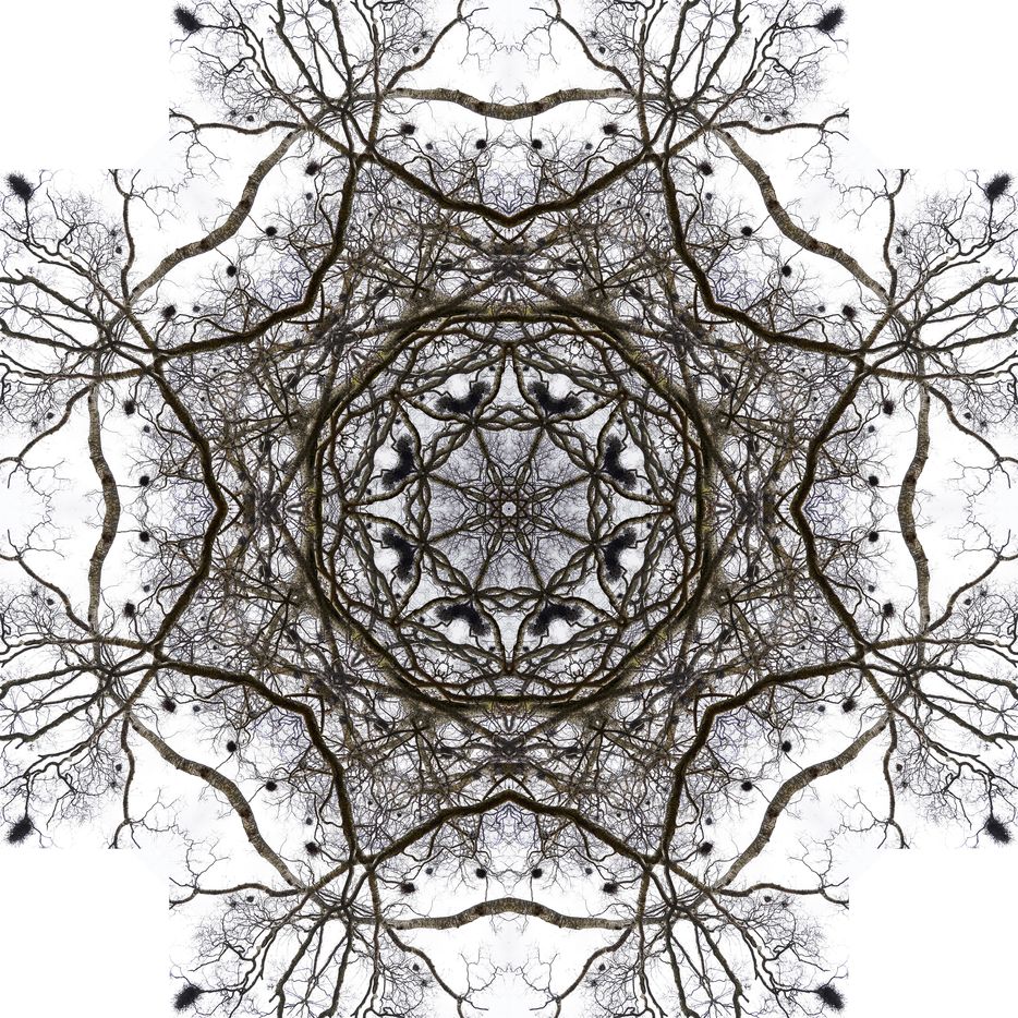 With these Mandalarbres, I let myself be carried away by my attraction for trees (all trees), my love of mathematics (geometry, symetries), my willingness to reorganize life to bring out other dimensions (consciences and unconscious, real and imaginary, visible and invisible), and my repeated attempts to embody the part and the whole in the same representation with the hope of showing that everything is interconnected (because we - whatever we are - do not exist without the others - whatever these others are, across geographical and temporal boundaries). To me, there is infinitely large and infinitely small in these Mandalarbres...