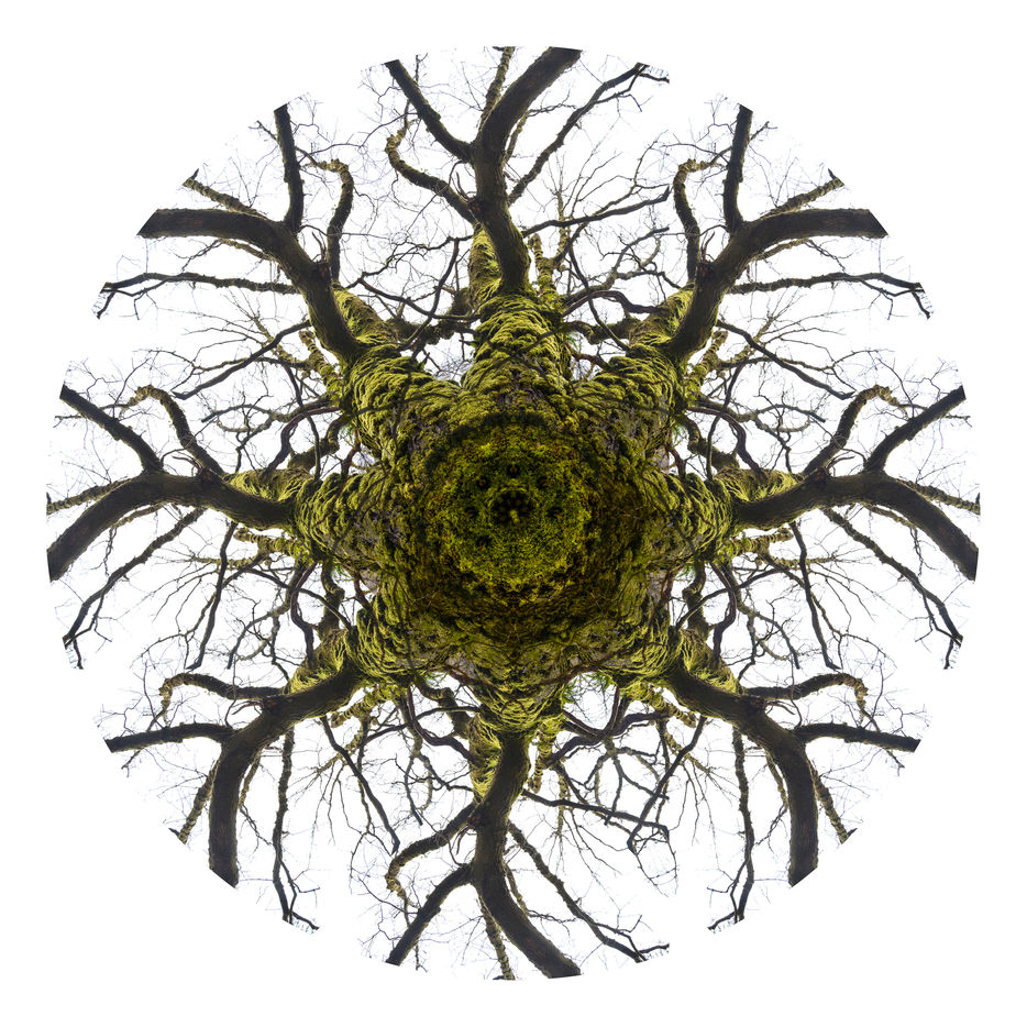 Avec ces Mandalarbres, je me suis laissée (em)porter par mon attraction pour les arbres (tous les arbres), mon amour des mathématiques (de la géométrie, des symétries), ma propension à réorganiser la vie pour faire émerger d'autres dimensions (consciences et inconscientes, réelles et imaginaires, visibles et invisibles), et mes tentatives répétées d'incarner la partie et le tout dans une même représentation dans l'espoir de montrer que tout est interconnecté (car nous - quel que soit ce nous - n'existons pas sans les autres - quels que soient ces autres, par delà les frontières géographiques et temporelles). A mes yeux, il y a de l'infiniment grand et de l'infiniment petit dans ces Mandalarbres.