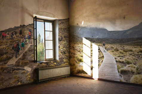 Leurs murs se font alors subtilement pages blanches, support de mes tentatives d'évasion et de reconnexion à une nature grandiose fraîchement traversée qui ne demande qu'à remonter à la surface. Des pièces comme autant de boîtes à souvenirs, de portails intérieurs, où extérieur et intérieur fusionnent, où présent et passé s'unissent, où antipodes se croisent, où fini et infini s'inversent, où frontières s'effacent. Une traversée des mondes où tout est remis en perspective, et en premier lieu, la réalité de ce que nous voyons et le sens de nos pérégrinations...