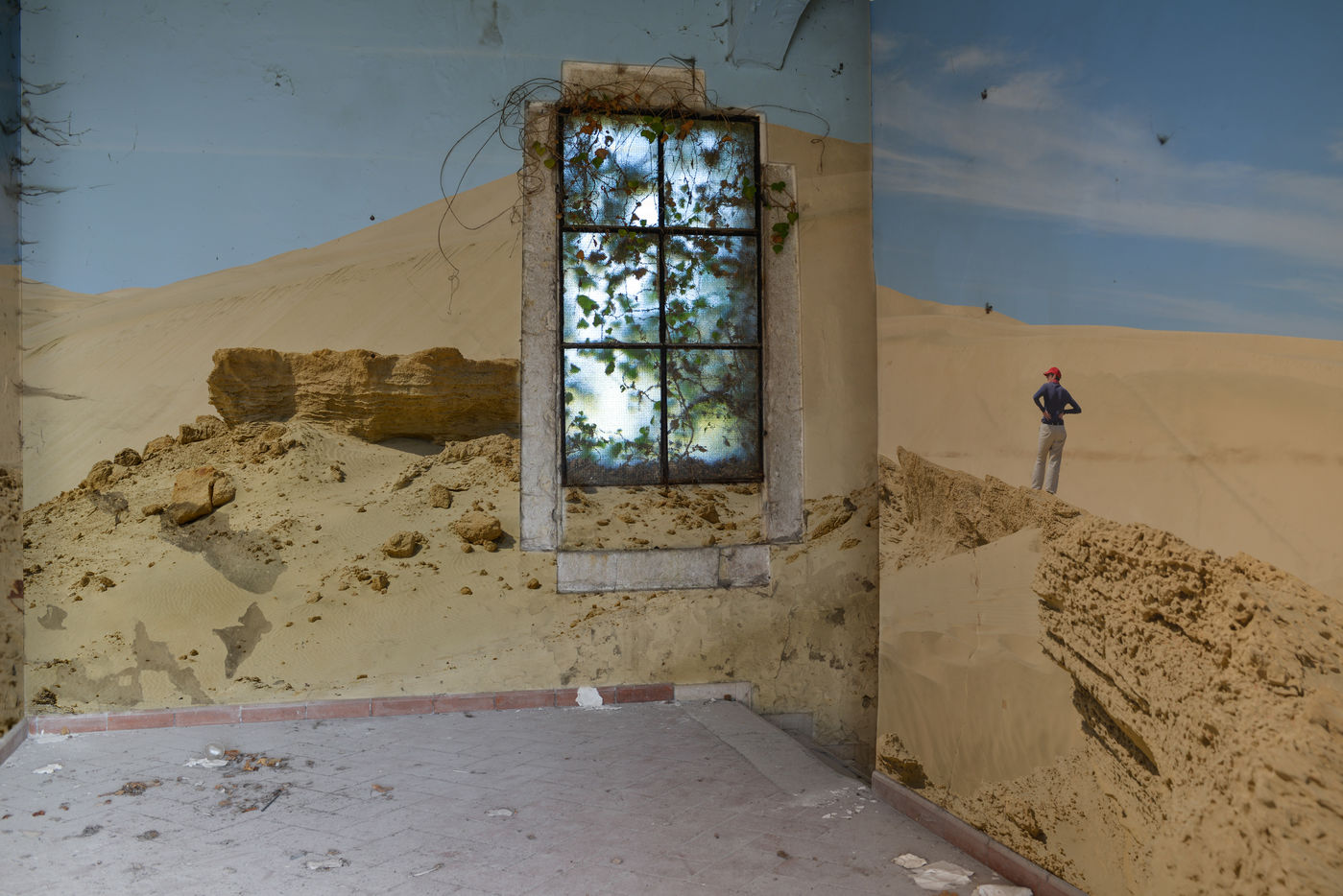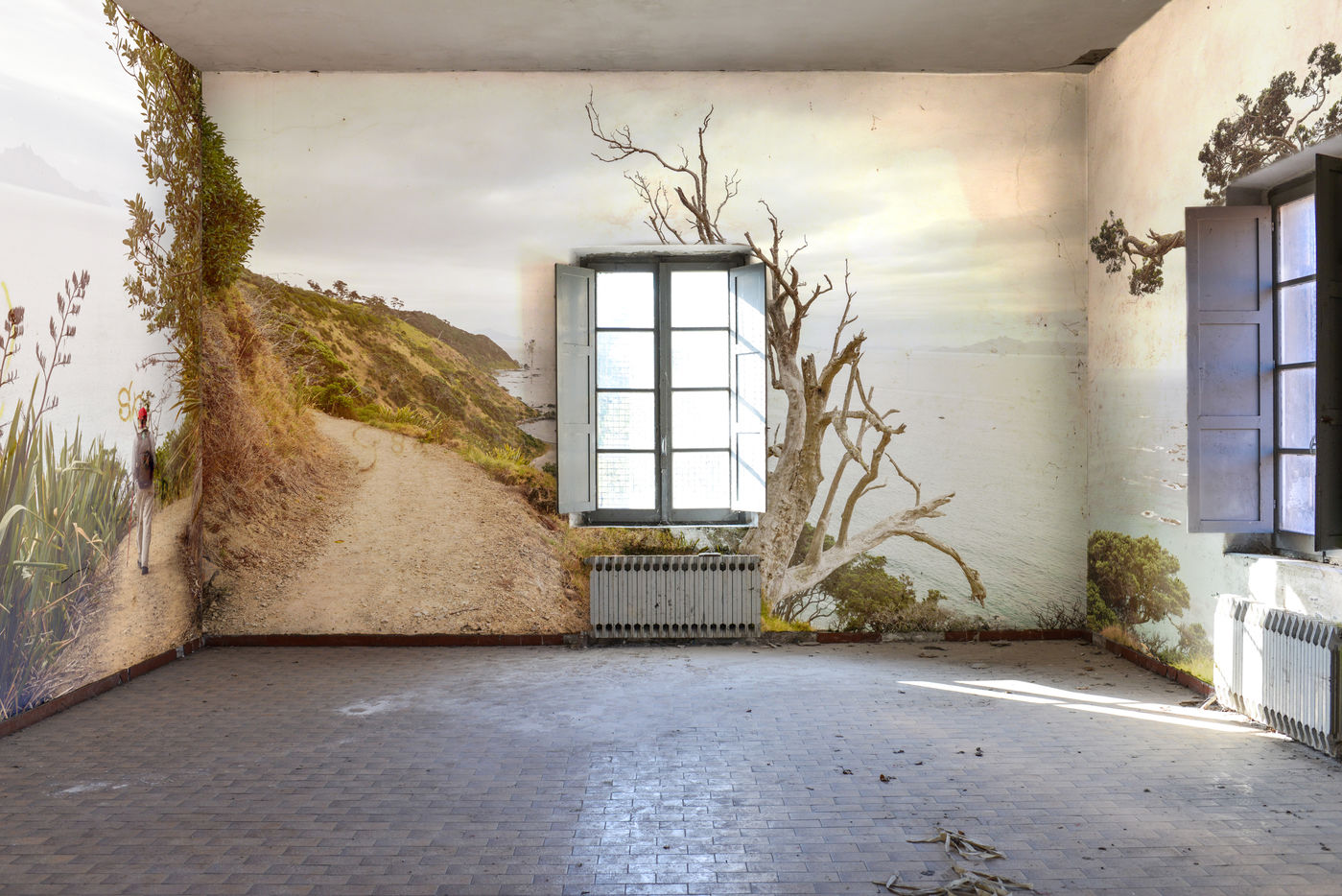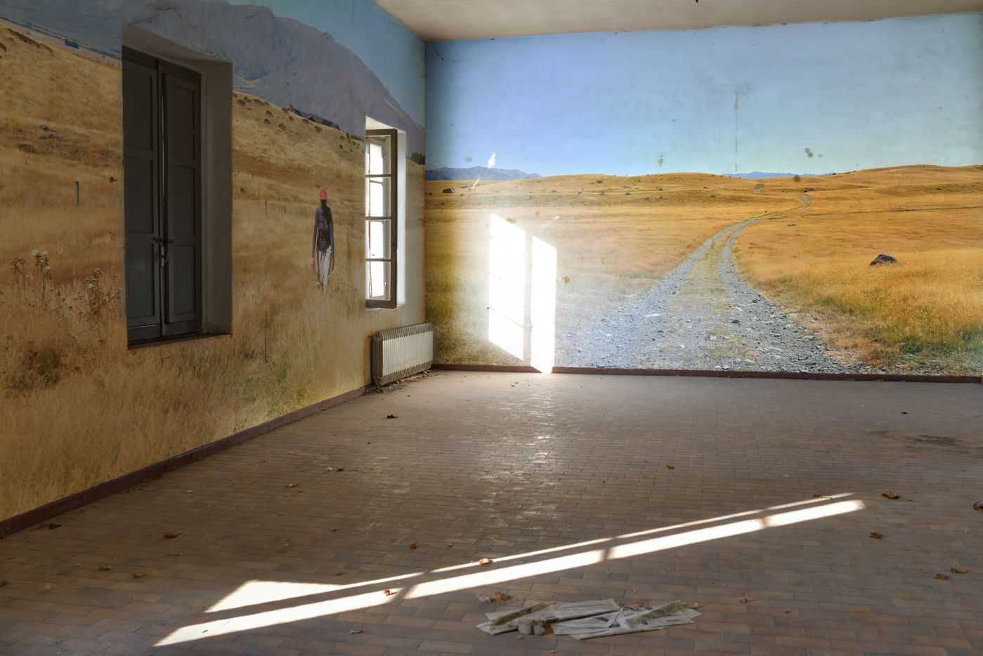 Their walls then subtly become blank pages, medium for my attempts to escape and reconnect with a grandiose nature freshly experienced and just waiting to come to the surface. Rooms like so many memory boxes, inner portals, where outside and inside merge, where present and past unite, where antipodes cross, where finite and infinity are reversed, where borders fade away. A journey through the worlds where everything is put into perspective, first of all, the reality of what we see and the meaning of our peregrinations...