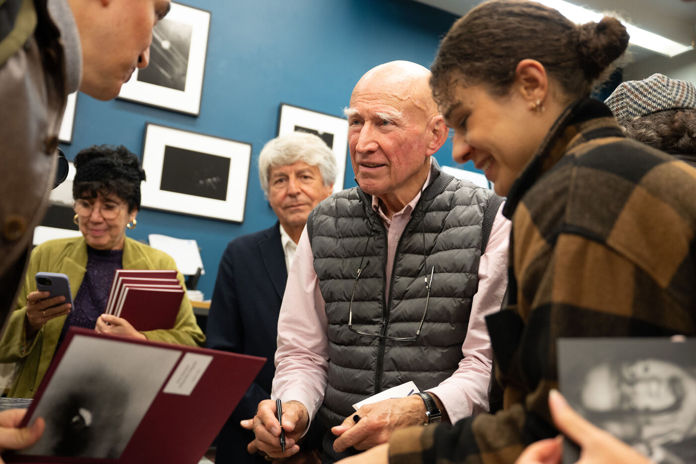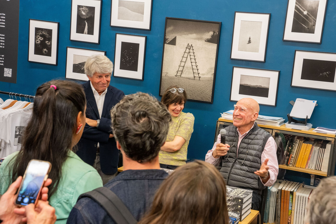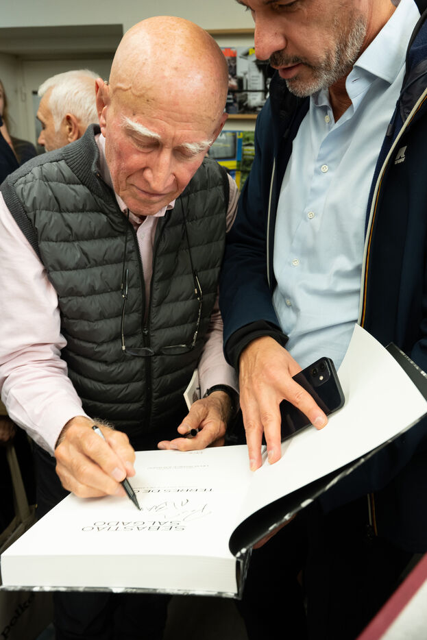 Sebastião Salgado presents his book Les Oiseaux at the Polka Factory gallery in Paris on October 24, 2024 during a discussion with Nathalie Chapuis, Atelier EXB collection director, and Alain Genestar. After sharing his reportage memories with an enthusiastic audience, he takes part in a book-signing session.
