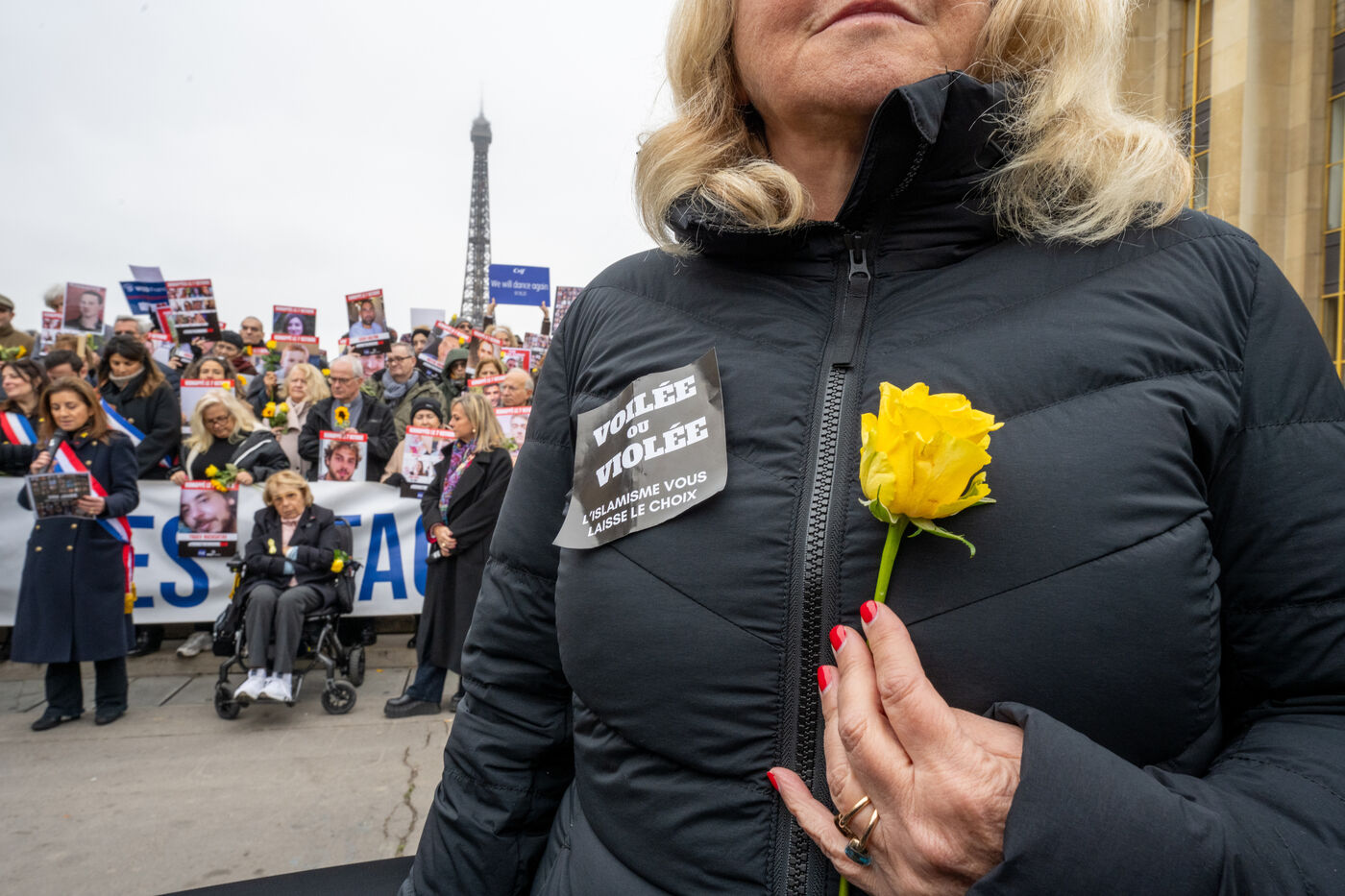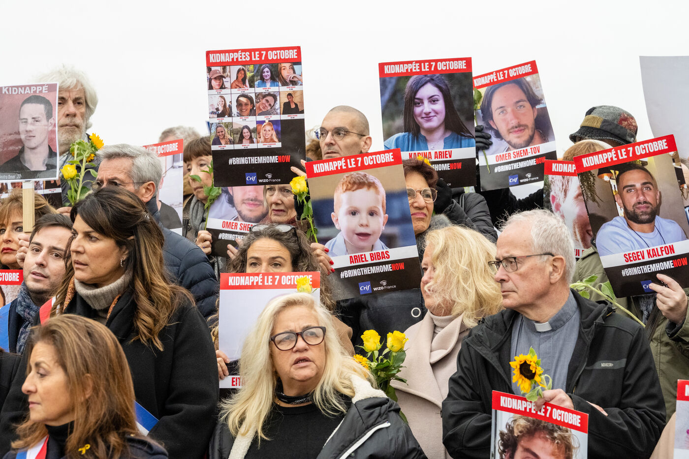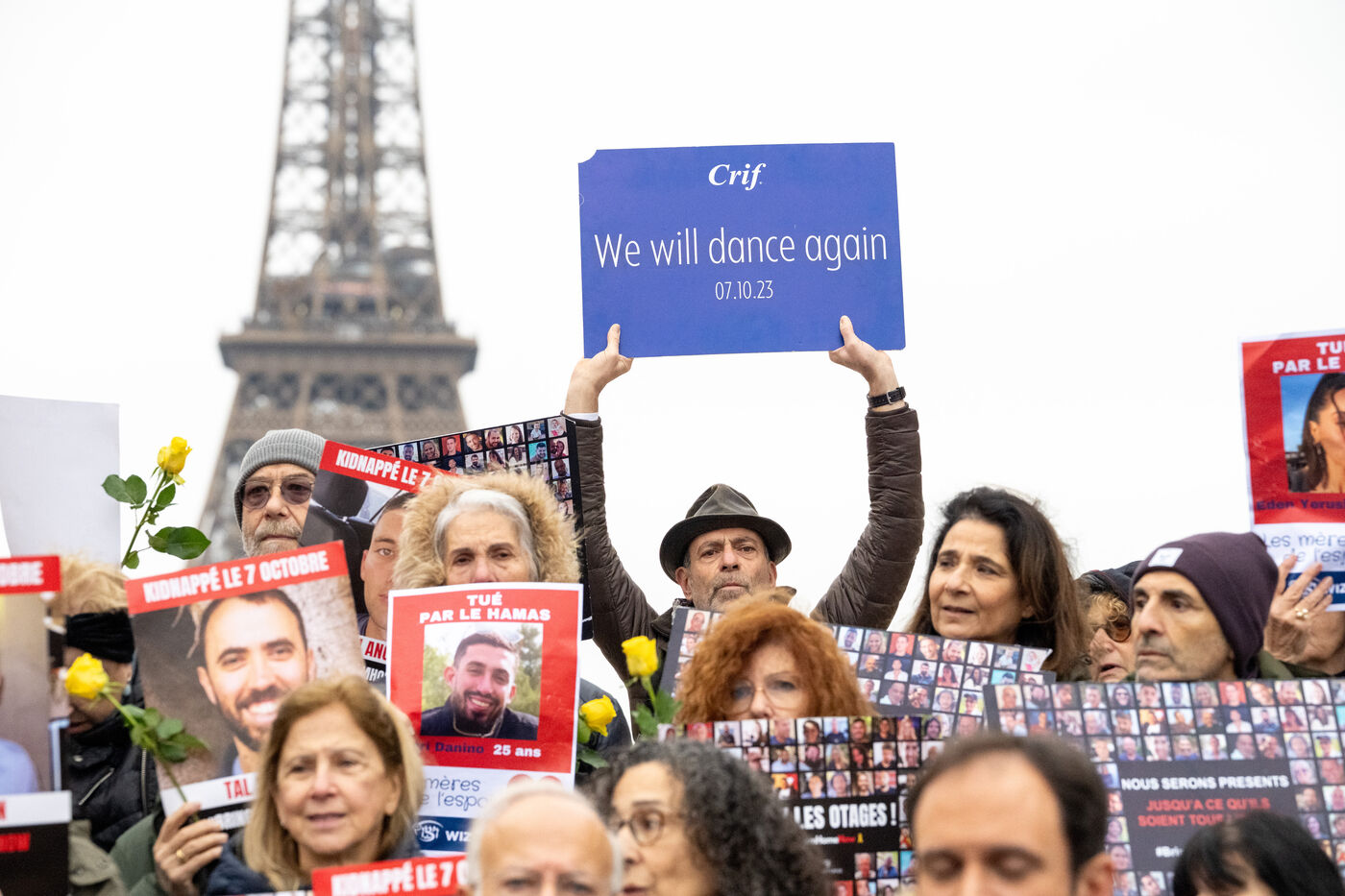 Since the start of the hostage situation following the Hamas terrorist attack on October 7, 2023, a gathering has been held every Friday at the Place du Trocadero in Paris. It will be 9 months on November 9, 2024. The rally on November 8, 2024 was particularly symbolic, as it marked the 399th day of the hostages' captivity. It brought together celebrities and anonymous people carrying placards inscribed with the hashtag BringThemHomeNow and photos of the 101 faces of those still held or who died in detention in Gaza. Yellow roses and sunflowers symbolized hope for the hostages' release. The initiative was led by the collective Les Mères de l'Espoir, with the support of the CRIF and Wizzo France. It will run until the last hostage is freed, every Friday from 12:15 to 12:45.
