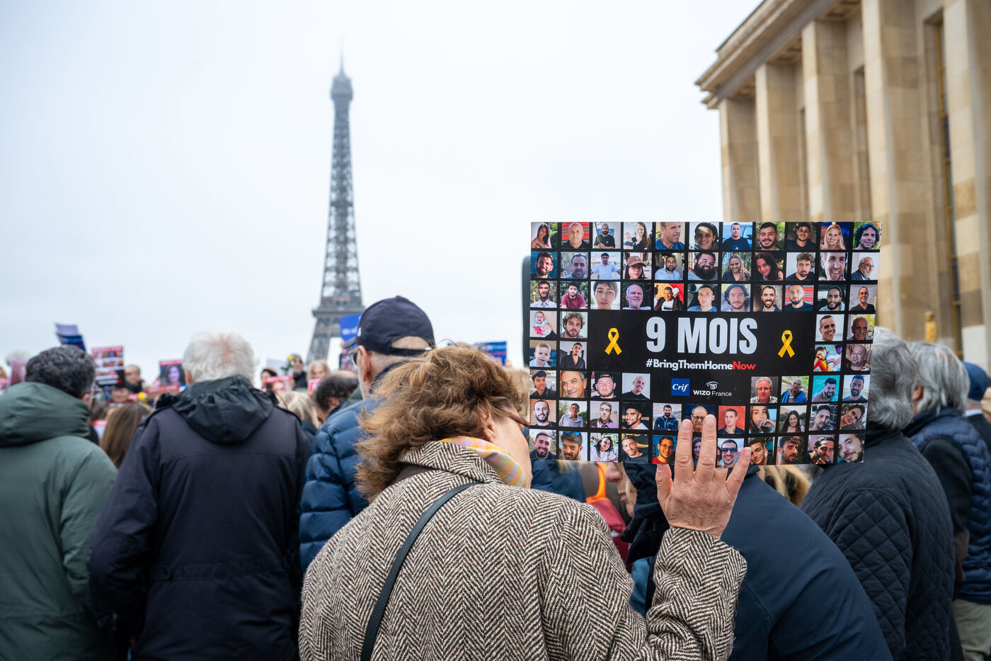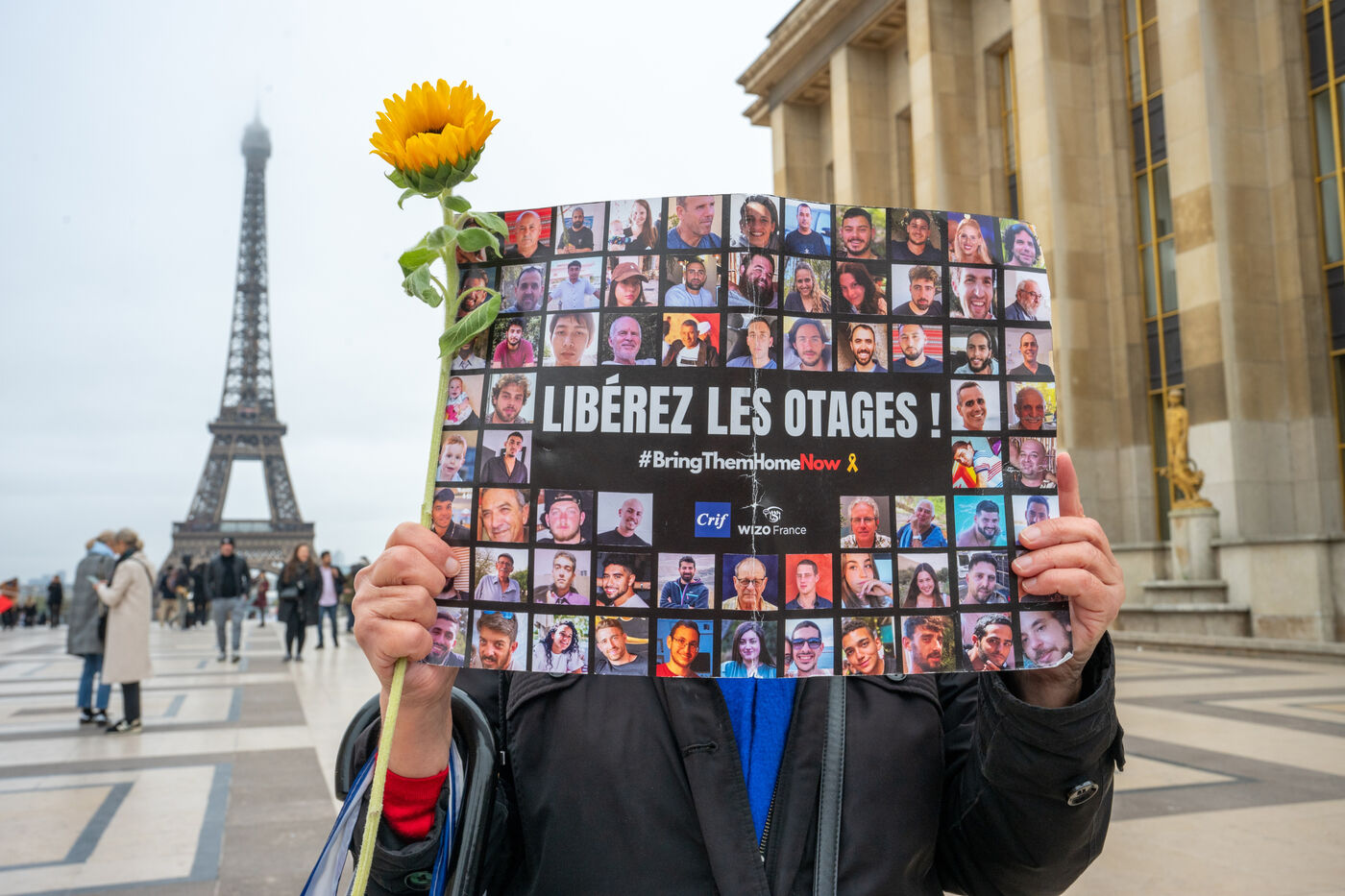 Depuis le début de la détention des otages qui a suivi l'attaque terroriste du Hamas le 7 octobre 2023, un rassemblement se tient tous les vendredi Place du Trocadero à Paris. Cela fera 9 mois le 9 novembre 2024. Le rassemblement du 8 novembre 2024 était particulièrement symbolique puisqu'ils marquait le 399éme jour de captivité des otages. Il réunissait des personnalité et des personnes anonymes portant des pancartes avec l'inscription du hashtag BringThemHomeNow et les photos des 101 visages des personnes encore détenues ou mortes en détention à Gaza. Des roses jaunes et des tournesols symbolisaient l'espoir de la libération des otages. Cette initiative était conduite par le collectif Les Mères de l'Espoir avec le soutien du CRIF et Wizzo France. Elle se déroulera jusqu'à la libération du dernier otage, tous les vendredi de 12h15 à 12h45.