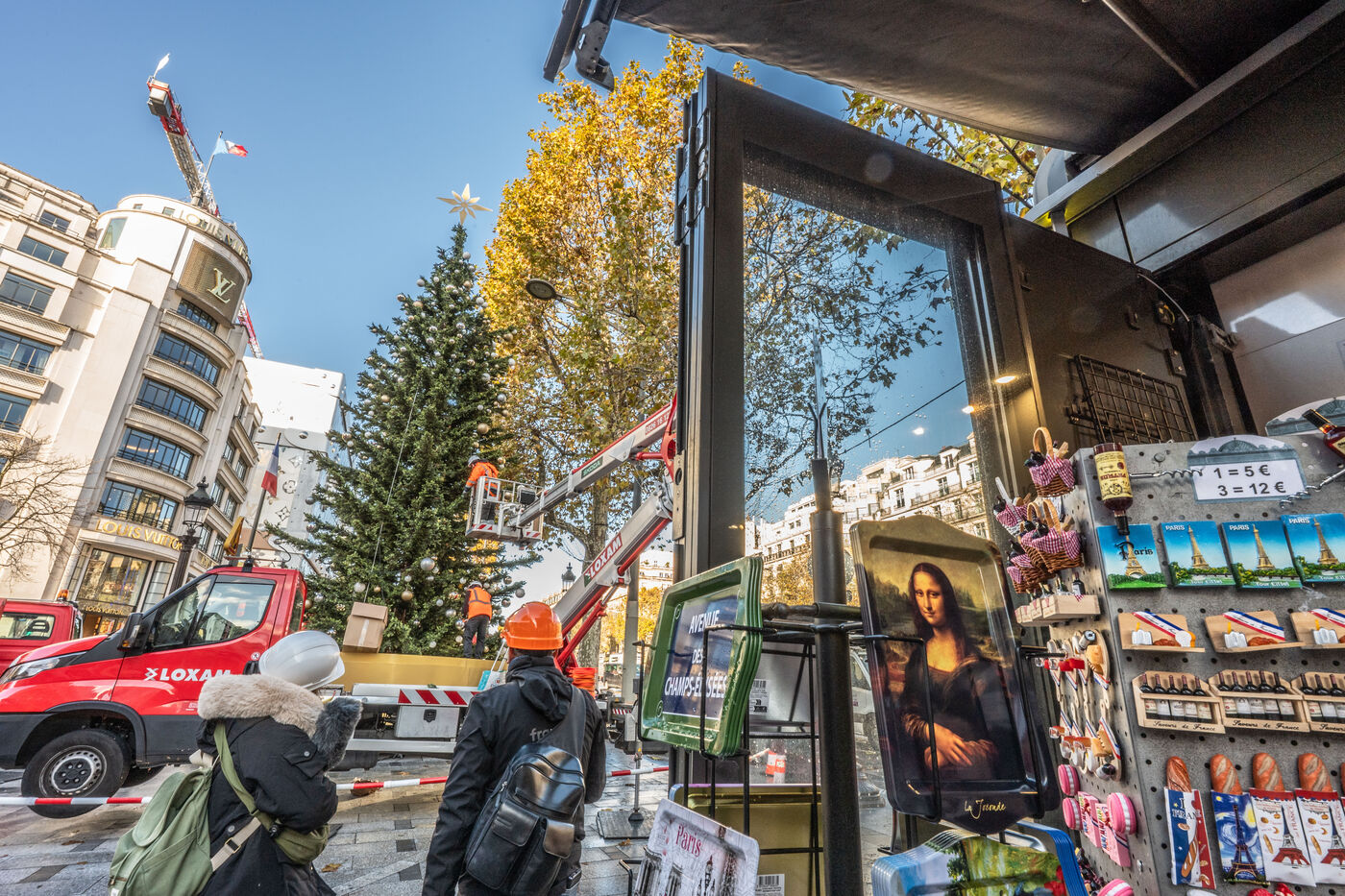 PREPARING THE ILLUMINATIONS ON THE CHAMPS ELYSEES
