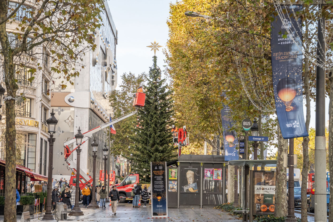 Cette année les illuminations de Noël 2024 sur l'avenue des Champs Elysées à Paris seront marquées par la célébration de la vasque du ballon du jardin des Tuileries qui avait séduit le public pendant les JO de Paris 2024. Des décorateurs ont préparé l'illumination d'un immense sapin avant le lancement des décorations de Noël sur l'avenue des Champs Elysees à paris à partir du dimanche 24 novembre 2024 jusqu'à janvier 2025.