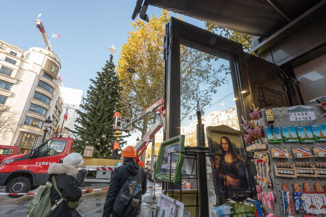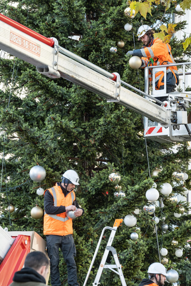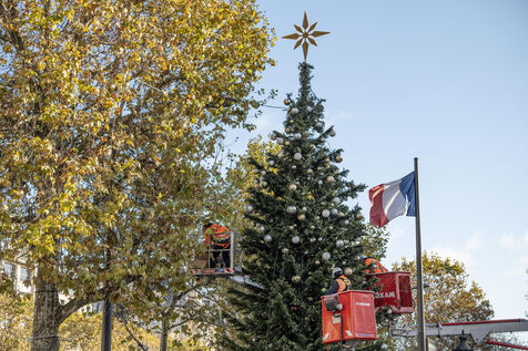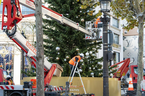 Cette année les illuminations de Noël 2024 sur l'avenue des Champs Elysées à Paris sont marquées par la célébration de la vasque du ballon du jardin des Tuileries. Elle avait séduit le public pendant les JO de Paris 2024. Des décorateurs ont préparé un immense sapin avant la cérémonie du coup d'envoi des illumination.