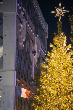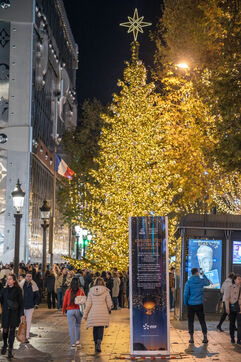 This year's 2024 Christmas illuminations on the Avenue des Champs Elysées in Paris are marked by the celebration of the balloon vasque in the Jardin des Tuileries. It had captivated the public during the Paris 2024 Olympics. Decorators prepared a huge fir tree before the illumination ceremony.