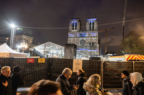 Five years after the tragic fire of April 2019, Notre-dame Cathedral in Paris is gearing up for a weekend of launch ceremonies for the reopening on Saturday, December 7 in Paris, France. The cathedral once again sparkles in the heart of the city with renovated stained-glass windows, a new spire and chevet cross. Meanwhile, work continues on the cathedral's exterior.