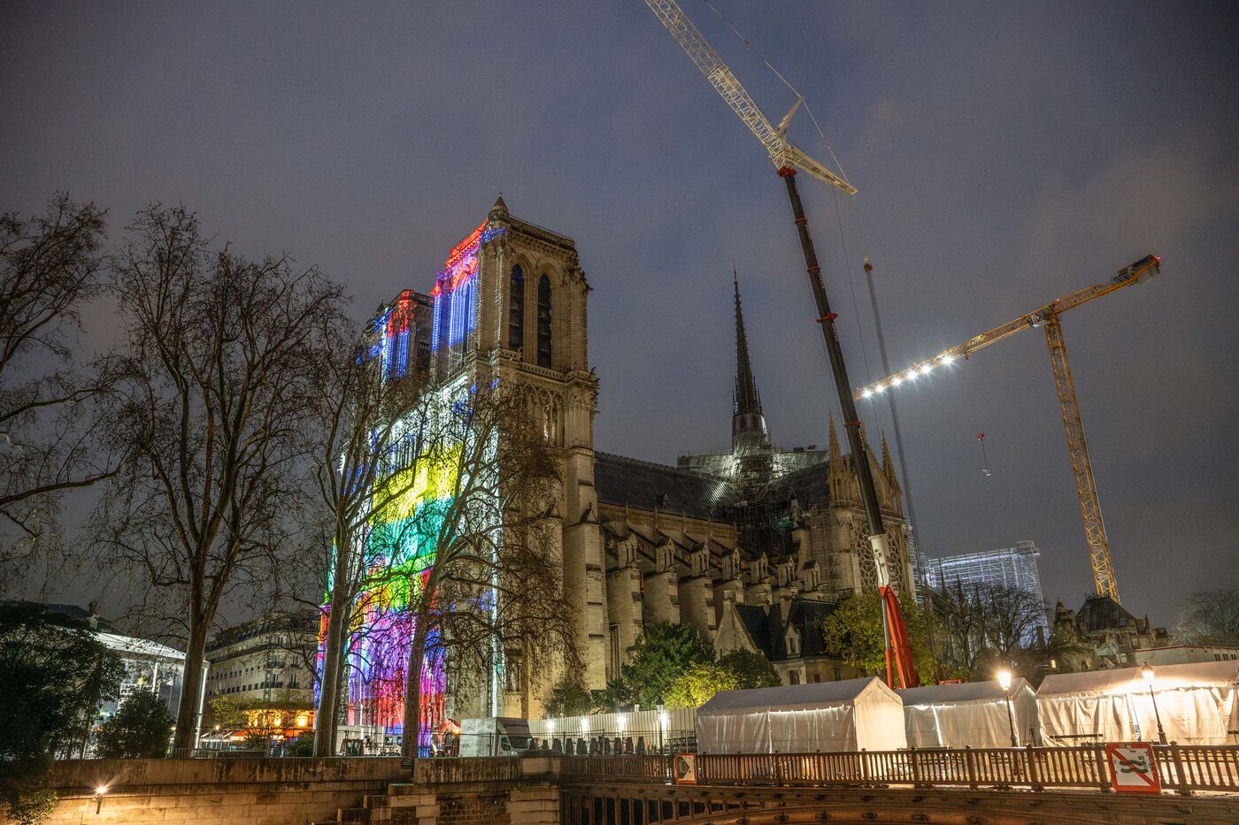 Cinq ans après l'incendie tragique d'avril 2019, la cathédrale Notre-dame de Paris se prépare pour un weekend de lancement des cérémonies de rouverture du samedi 7 décembre à Paris en France. La cathédrale est à nouveau étincelante au coeur de la citée avec des vitraux rénovés, une flèche et une croix du chevet retrouvées. Pendant ce temps les travaux de convalescence de la cathédrale se poursuivent à l'extérieur.