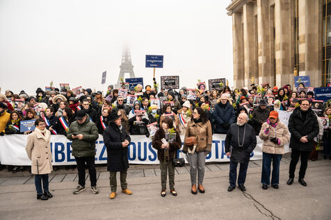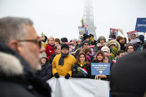 Since the start of the hostages' detention following the Hamas terrorist attack on October 7, 2023, a rally has been held every Friday at the Place du Trocadero in Paris. The rally on January 17, 2025 marked the 469th day of captivity in Gaza, on the eve of a ceasefire agreement leading to their release. The rally brought together celebrities and anonymous people carrying placards inscribed with the hashtag BringThemHomeNow and photos of the faces of those still held or who had died in detention. A placard showed the image of Donald Trump as a game-changer at the center of the stakes for the hostages' release.
