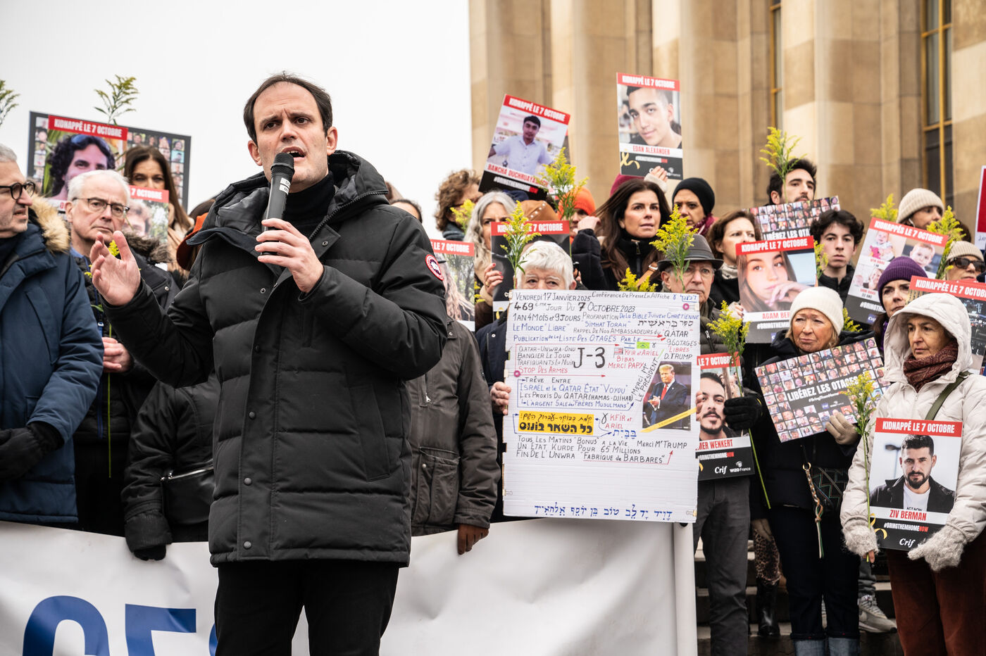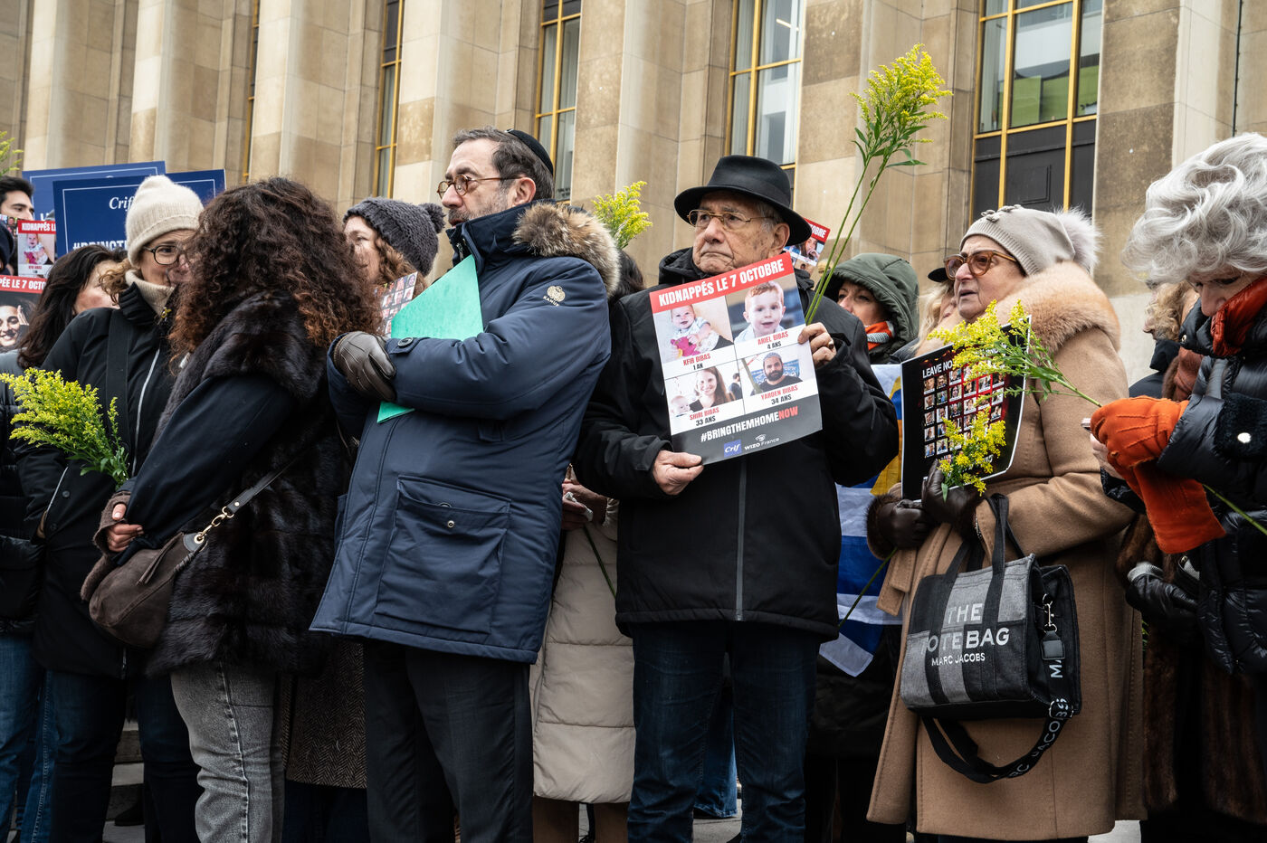 Depuis le début de la détention des otages qui a suivi l'attaque terroriste du Hamas le 7 octobre 2023, un rassemblement se tient tous les vendredi Place du Trocadero à Paris. Le rassemblement du 17 janvier 2025 marquait le 469éme jour de captivité à Gaza, à l'avant-veille d'un accord de cesser le feu devant aboutir à leur libération. Le rassemblement réunissait des personnalité et des personnes anonymes portant des pancartes avec l'inscription du hashtag BringThemHomeNow et les photos des visages des personnes encore détenues ou mortes en détention. Une pancarte montrait l'image de Donald Trump pouvant changer la donne au centre des enjeux de la libération des otages.