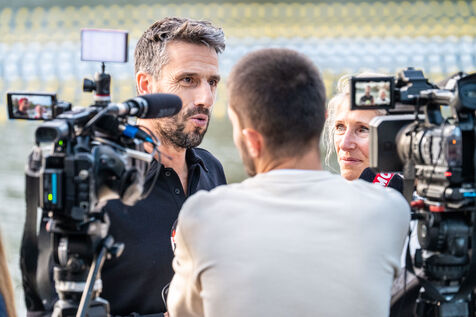 During the Open EDF sur Seine competition, French athlete Tony Estanguet, three-time Olympic canoeing champion, and Maxime Grousset, French world champion in the 100m butterfly, took on a challenge combining their two sporting specialties to lead a sprint race over 100 meters. This event was part of the first edition of the Sports Festival announced by French President Emmanuel Macron during the Paris 2024 Olympic Games, held on the Grenelle basin in the Seine in Paris. The event was held in the presence of Marie Barsacq, Minister of Sports, Youth and Community Life, and Amélie Oudéa-Castéra, President of the French National Olympic and Sports Committee.
