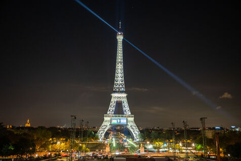 Projection des drapeaux Palestiniens et israéliens sur la Tour Eiffel