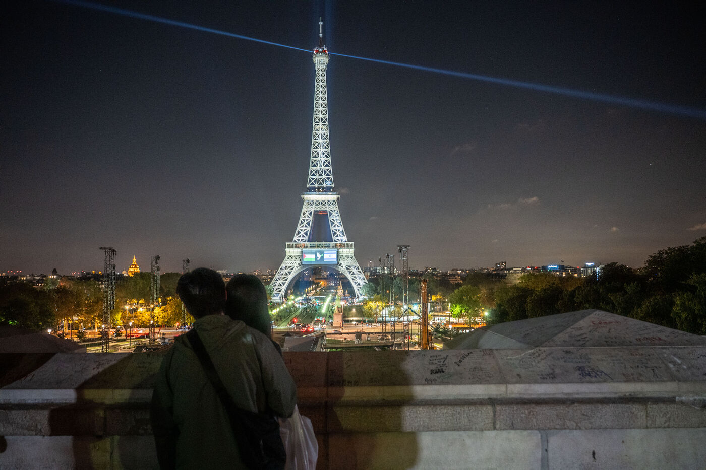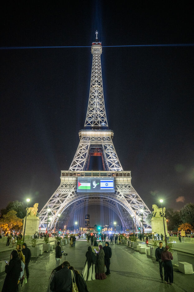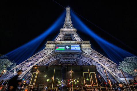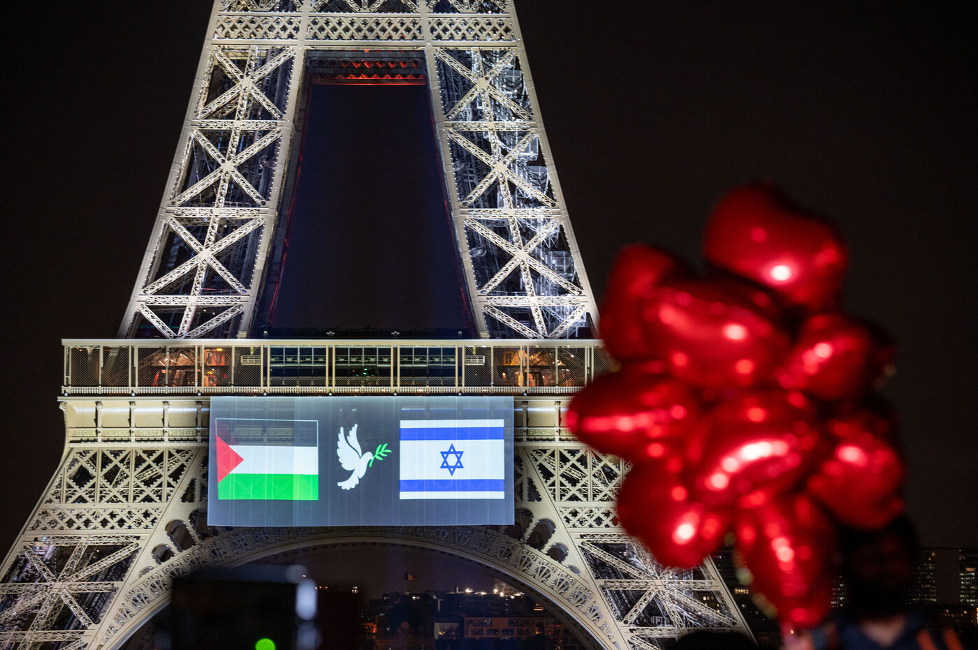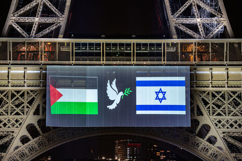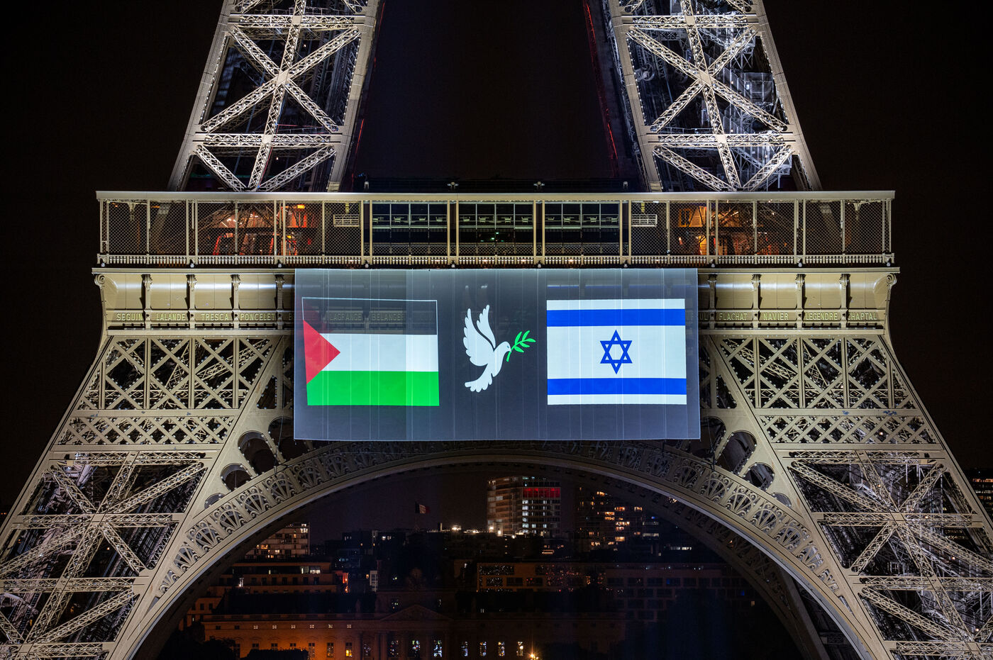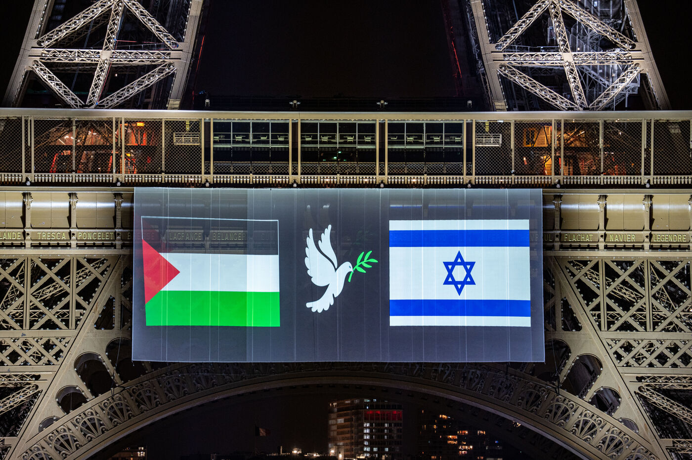 Projection of Palestinian and Israeli flags on the Eiffel Tower