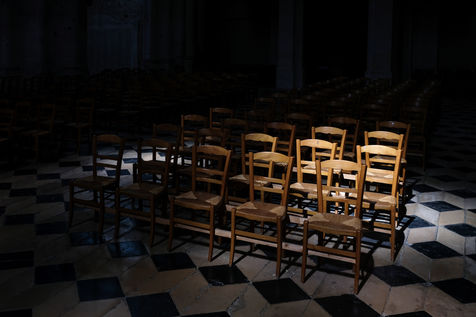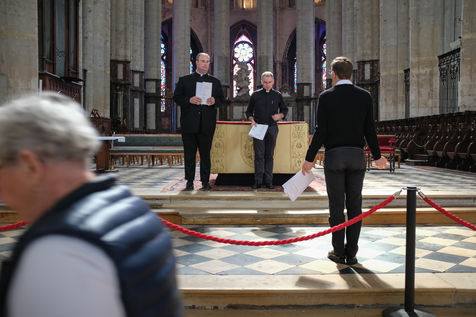 Sous la nef inachevée de la cathedrale de Beauvais, Augustin Chartier et deux prêtres cérémoniaires préparent son ordination qui aura lieu le surlendemain.