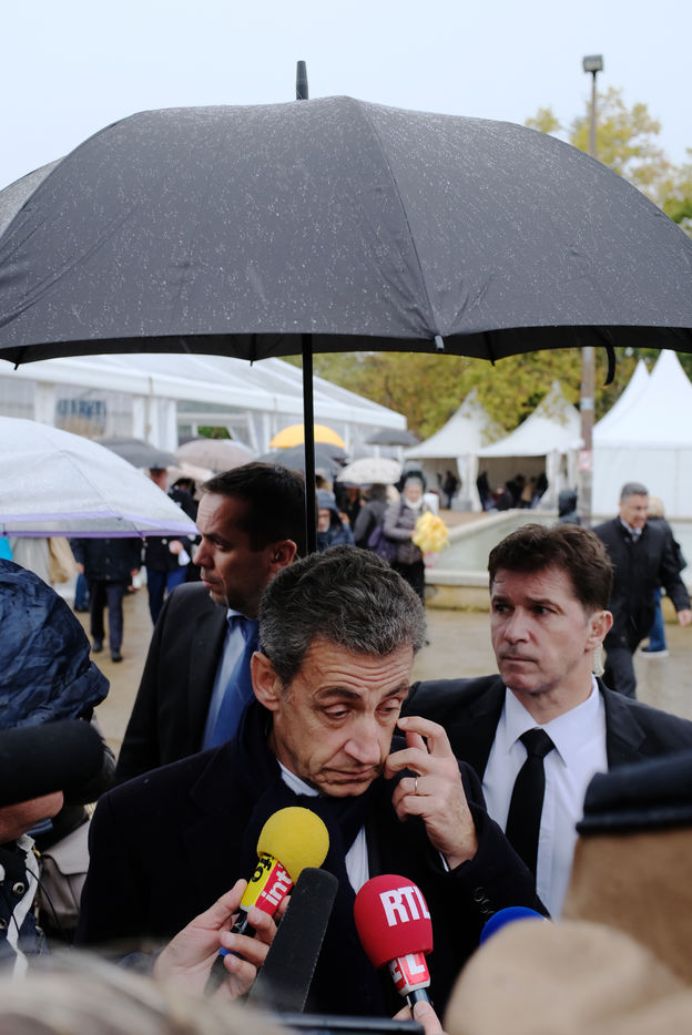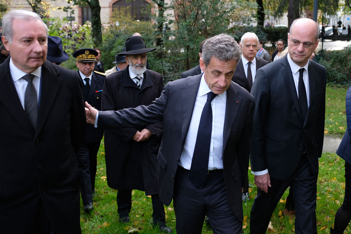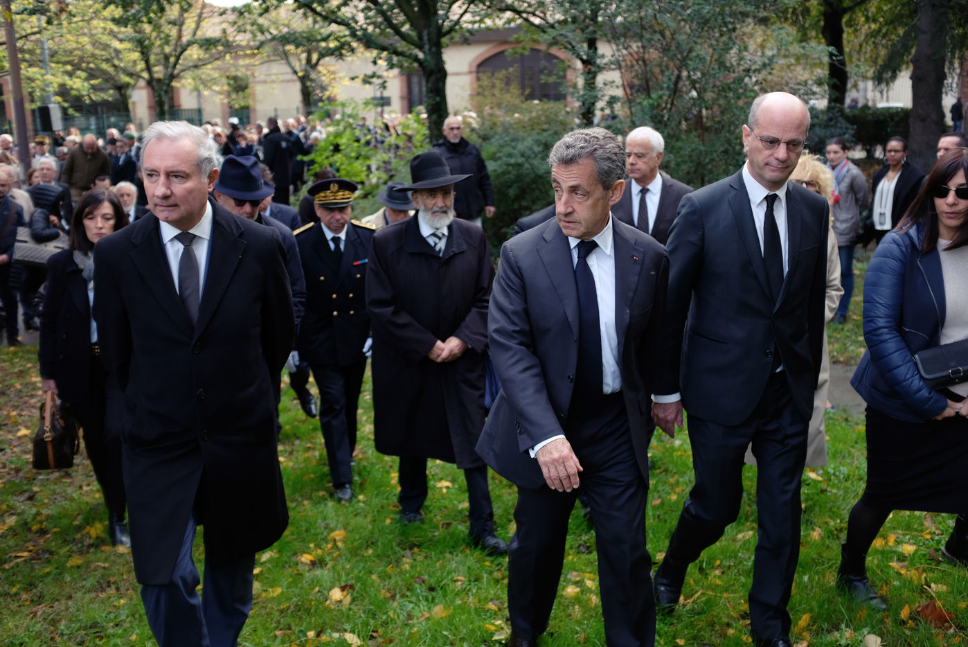 Baptême de l'allée Monsonégo-Sandler à Toulouse en présence de Jean-Luc Moudenc, maire de Toulouse, Nicolas Sarkozy, ancien président de la République, Jean-Micher Blanquer, ministre de l'éducation nationale et de la jeunesse. En hommage à Myriam Monsonégo, Arié, Gabriel et Jonathan Sandler, victimes du terrorisme en mars 2012.