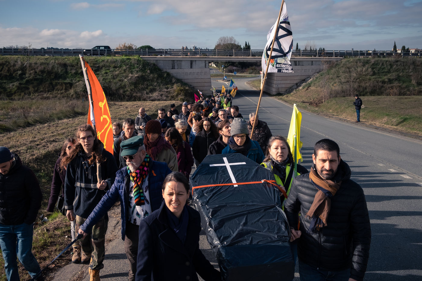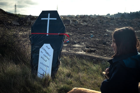 This Sunday, December 15, 2019 in Carcassonne, Extinction Rebellion invited the people of Carcassonne to participate in the "funeral of the Moreau and Rocadest area". This commercial zone under construction is located on the outskirts of the city. It is an environmental aberration and contributes to the desertification of the city centre. Yellow vests and environmental activists joined the demonstration.