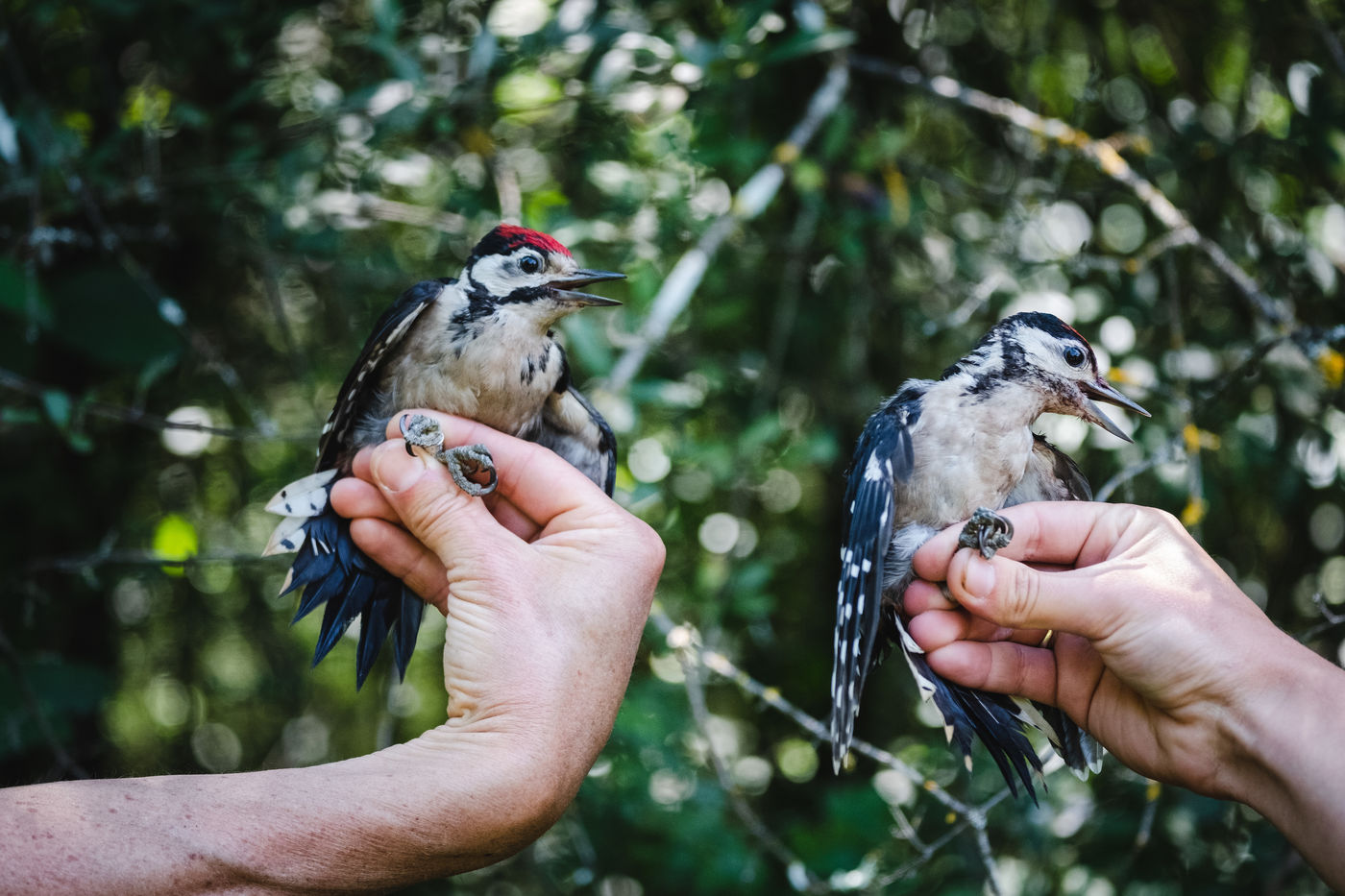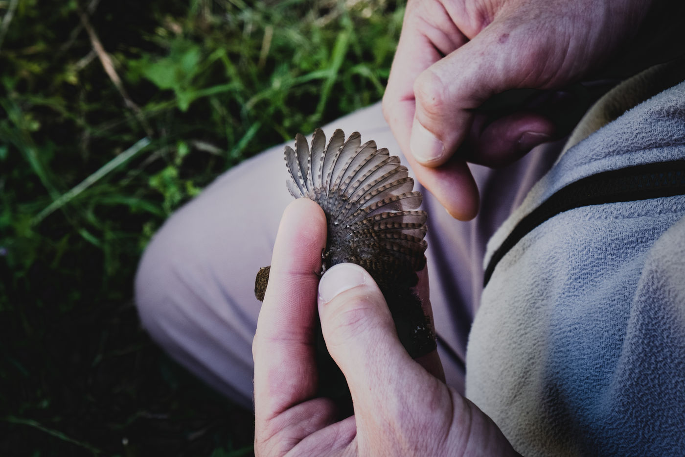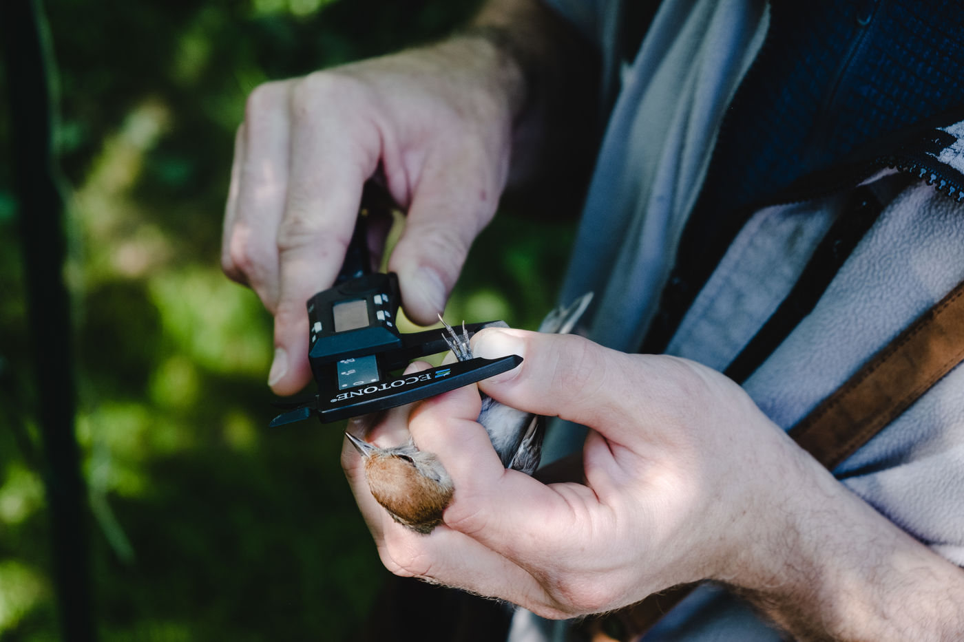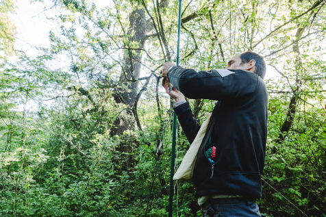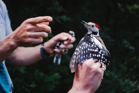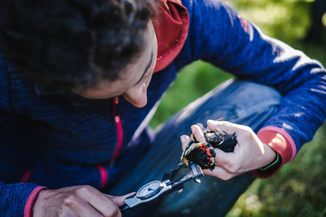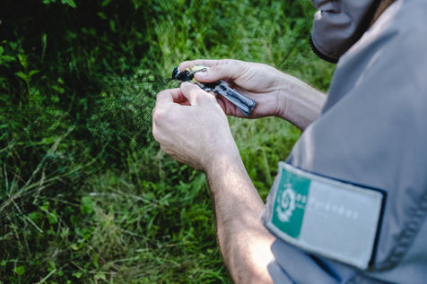 That morning, the guards of the Pyrenees National Park and a ringer from an independent consultancy firm met in the valley for the first capture session. It is 6 o'clock in the morning in Lau-Balagnas, the lights of the headlamps twirl in the darkness. The guards are busy unfolding the nets they set up the day before and which they have taken care to fold up so as not to capture birds during the night. At 6.30 am, the captures can begin, the first passerines are caught in the nets. Fifteen nets were set in bays hidden in the heart of the forest on the edge of the Gave de Pau. The two teams rush into the woods having previously separated the number of nets in half. Every thirty minutes, the two teams of guards have to return to the first net to check that a bird has not been stuck for too long. Once a bird is caught in one of the nets, a bander will remove the enamel. The first observation is whether or not there is a band on the leg. The vast majority of common birds have been banded in France with the mention of the Paris Natural History Museum, but sometimes a bird has been banded abroad, in the case of a migratory bird for example. If the state of health of the bird in question allows it, one of the guards delicately bands the animal. One of the purposes of banding is to find out how long the bird will live and whether it is moving around and for what purpose. The guards and banders then measure the length of the tarsus, the bird's leg between the thigh and the foot where the band is placed. The third step is to measure the wing. Then comes the determination of the sex of the animal when it is adult and sometimes for the young when possible. This determination is carried out according to precise criteria such as the presence/absence of a brood patch, a cloacal protuberance or a colour dimorphism which is the difference in colour contrast found notably on the wings. Guards and banders continue their observations by looking at the state of moulting in the animal. This corresponds to the renewal of the plumage with the loss of old feathers. Then comes the stage of weighing the bird in a cone or small cloth bag. All these steps are carried out as efficiently as possible so as not to stress the animal. The bird is released close to the net so that it can find its bearings more easily.