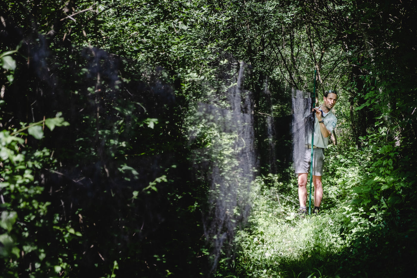 Ce matin-là, les gardes du Parc National des Pyrénées et une bagueuse d'un bureau d'étude indépendant se sont donnés rendez-vous dans la vallée pour la première session de capture. Il est 6 heures du matin à Lau-Balagnas, les lumières des frontales virevoltent dans l'obscurité. Les gardes s'affairent à déplier les filets qu'ils ont monté la veille et qu'ils ont pris soin de replier pour ne pas capturer d'oiseaux durant la nuit. 6h30, les captures peuvent commencer, les premiers passereaux se font prendre dans les filets. Quinze filets ont été mis en place dans des travées dissimulées au coeur de la forêt située en bordure du Gave de Pau. Les deux équipes s'engouffrent dans les bois en ayant préalablement séparé le nombre de filets en deux. Toutes les trente minutes, les deux équipes de gardes devons être revenues au premier filet pour vérifier qu'un oiseau ne soit pas resté bloqué trop longtemps. Une fois qu'un oiseau se fait prendre dans l'un des filets, un bagueur s'applique à démailler l'animal. La première observation est la présence ou non d'une bague sur la patte. La grande majorité des oiseaux communs ont été bagués en France avec la mention du Muséum d'Histoire Naturelle de Paris mais il arrive parfois qu'un oiseau ai été bagué à l'étranger, dans le cas d'un oiseau migrateur par exemple. Si l'état de santé de l'oiseau en question le permet, un des gardes procède délicatement au baguage de l'animal. Cet acte sert notamment à connaître la durée de vie de l'oiseau et à voir si il se déplace et dans quel intérêt. Par la suite, Les gardes et bagueurs mesurent la longueur du tarse, autrement dit la patte de l'oiseau située entre la cuisse et le pied, là où se trouve la bague. Ils procèdent dans un troisième temps à la mesure de l'aile. Ensuite, vient la détermination du sexe de l'animal lorsqu'il est adulte et parfois pour les jeunes lorsque cela est possible. Cette détermination s'effectue en fonction de critères précis tels que la présence/absence d'une plaque incubatrice, d'une protubérance cloacale ou d'un dimorphisme de couleur qui est la différence de contraste de couleurs que l'on retrouve notamment sur les ailes. Les gardes et bagueurs poursuivent leurs observations en regardant l'état de la mue chez l'animal. Cela correspond au renouvellement du plumage avec la perte d'anciennes plumes. Vient ensuite l'étape de la pesée de l'oiseau dans un cornet ou dans un petit sac en tissu. Toutes ces étapes sont réalisées le plus efficacement possible afin de ne pas stresser l'animal. Le lâchage s'effectue à proximité du filet pour que l'oiseau retrouve plus facilement ses repères.