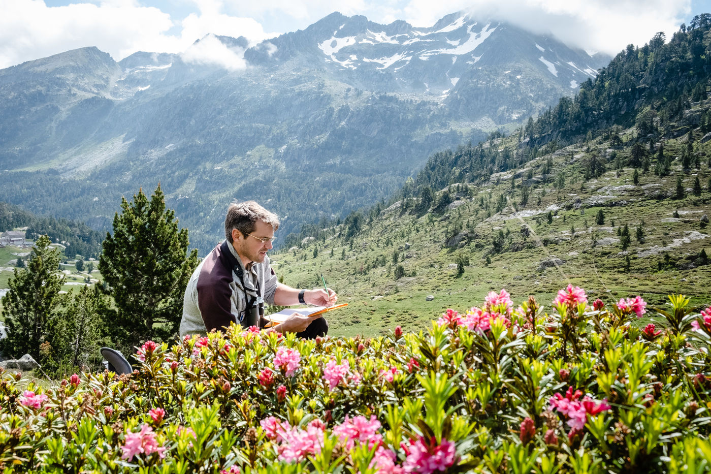 The Pyrenees National Park, created in 1967, is one of France's eleven national parks. For six months, I accompanied the guards of the Cauterets valley in the Hautes-Pyrénées in the field. As the seasons go by, the landscapes change, as do the naturalist monitoring activities. From day to day, we go out to count ibexes, observe the presence of flowers at an altitude of 3,000 metres, ring birds in the valley or take bear tracks in the misty forests. Diving into the heart of a little-known and very important profession.