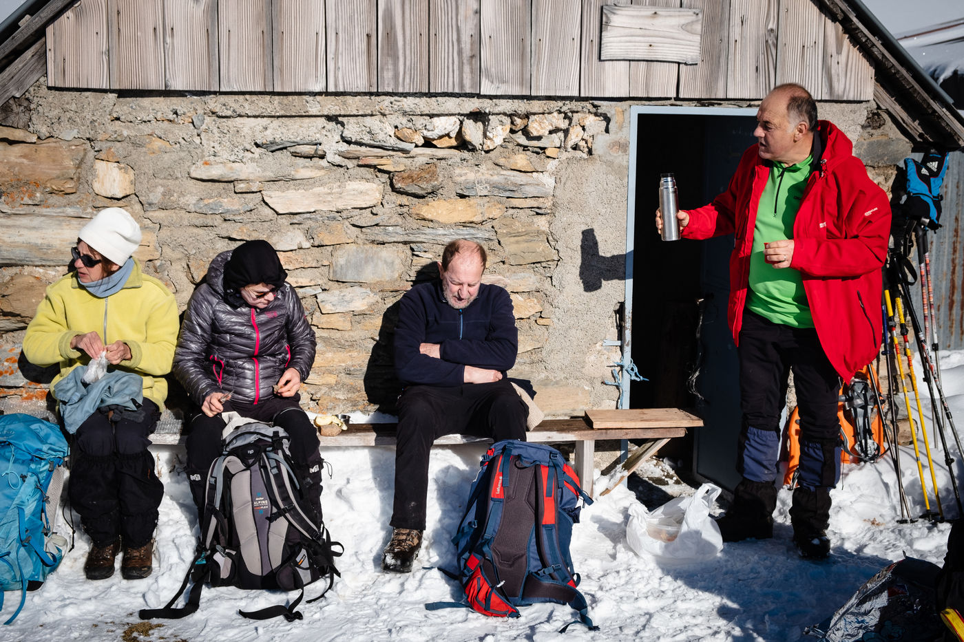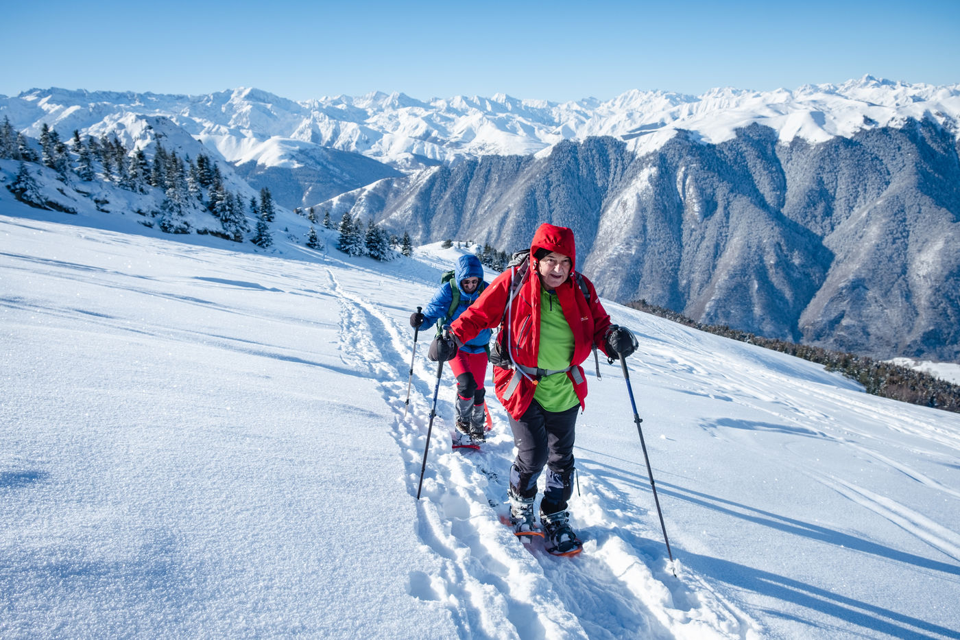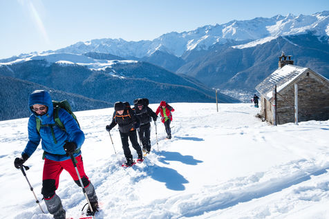 The MCS Montagne is a club for hikers, most of whom are retired. Every week, these nature lovers wander through the Pyrenean peaks in search of the most beautiful viewpoints that the chain has to offer. Without ever forgetting the pleasure of sharing an aperitif and a good meal at the summit. That day, they go on snowshoes to the Peyrehitte huts on the heights of Luchon, at 1900 metres altitude. Neither the cold nor the harshness of the effort breaks the good atmosphere of the group, created in 1992.