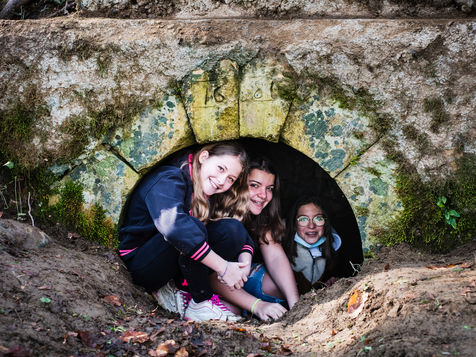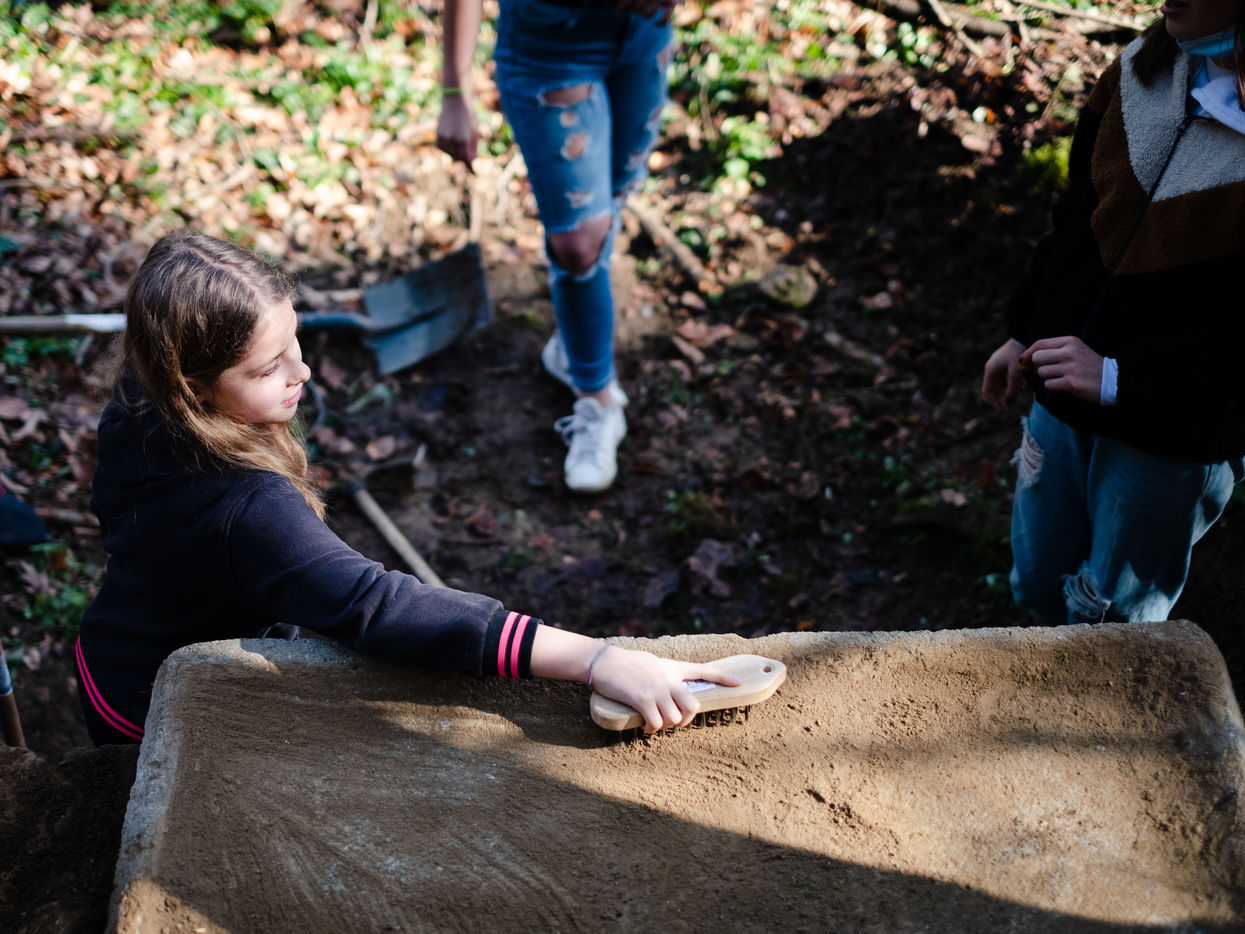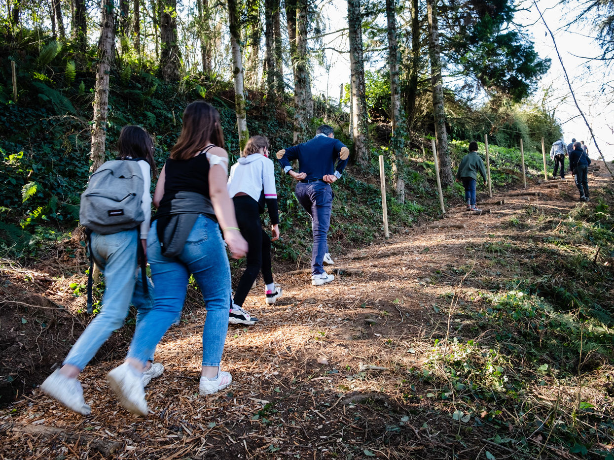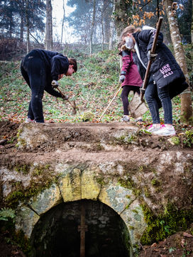 Petit à petit les neuf jeunes s'organisent pour faire renaitre ce chemin qui avait fini par disparaitre sous la végétation encombrante. Après une semaine de travail acharné, le groupe pose fièrement sur la fontaine bâtie en 1860.