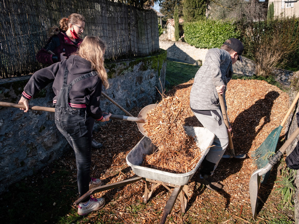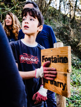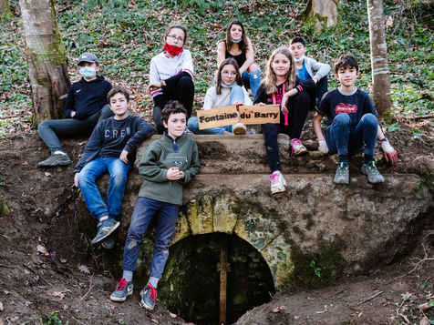Les ados travaillent à la création de marches qui mènent à la fontaine du Barry. Une fontaine dont parlait Joseph Blanc, ancien maire de Cassagne, dans sa monographie : "Comme dans la plupart des hameaux, l'approvisionnement en eau du village posa longtemps de difficiles problèmes. Les sources coulent en contre-bas assez loin des habitations. On utilisa naturellement les plus proches, sur le versant du Lens : les Hounts de Champagno, de Capsuran et du Barry. Ces deux dernières furent plus tard aménagées en fontaines publiques. Ainsi depuis les origines de la localité et jusqu'à une époque récente, des générations de femmes se sont succédé sur les sentiers de ces sources pour remplir la cruche de terre ventrue (la Dourne) et remonter inlassablement jusqu'au village l'eau nécessaire aux besoins du ménage."
