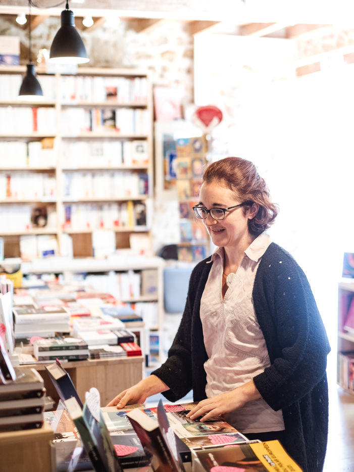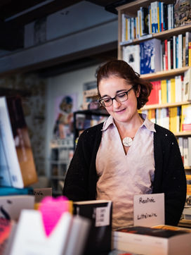 Gaelle Paty tells about her brother in her bookshop in Marciac