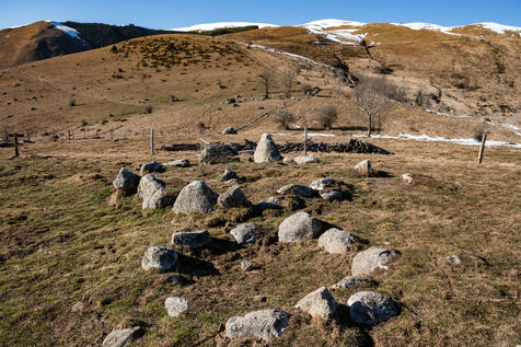 The cromlechs are a group of megalithic stones aligned in a circle and of various structures, ranging from the cromlech itself: "stones set in the ground forming a circle" to the tumulus defined as "group of circular stones". This is the case for the cromlechs on the Espiau mountain above the village of Saint-Aventin.