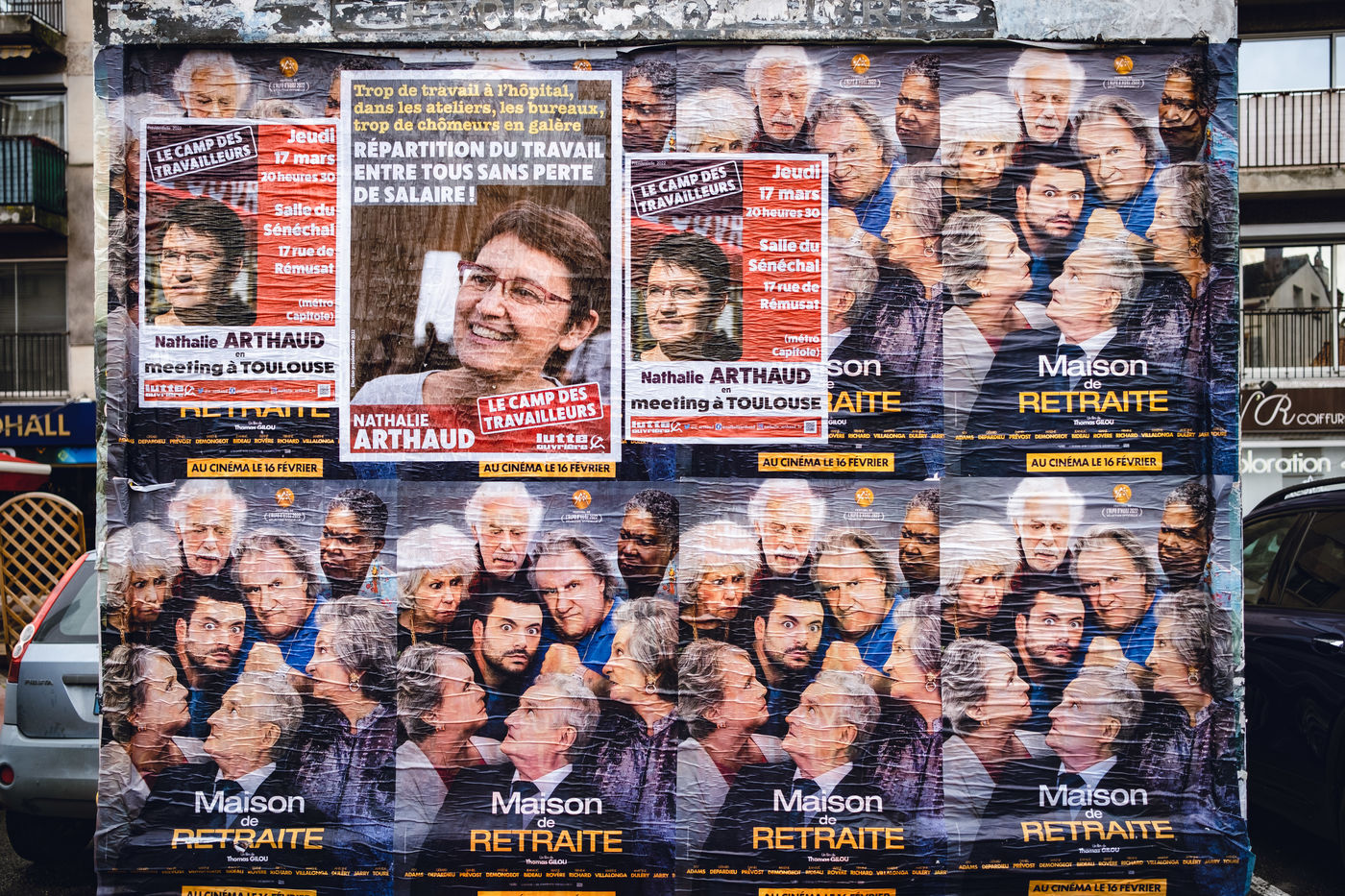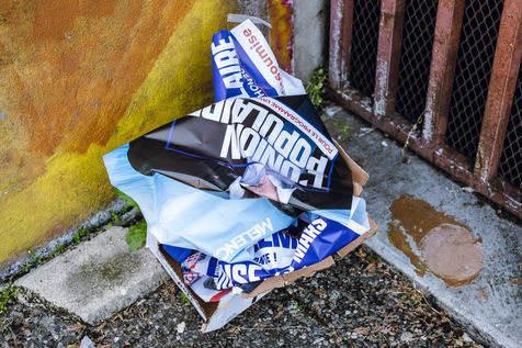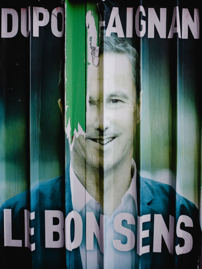 En campagne électorale, les candidats sont à l'affiche. Un dur combat idéologique se joue sur les murs des villes et villages. Une histoire de papiers temporaires.