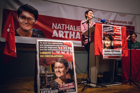 Nathalie Arthaud (Lutte Ouvrière) in a meeting in Toulouse