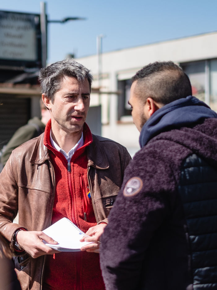 France, Toulouse, Université Jean Jaurès (Mirail), 2022-03-23. À l'approche du premier tour des élections présidentielles 2022, le député de la France Insoumise (LFI), François Ruffin, soutien du candidat Jean-Luc Mélenchon vient tenir un meeting. Tout proche de l'Université, il adresse notamment son discours à la jeunesse toulousaine en abordant le difficile mais important sujet de la précarité étudiante.