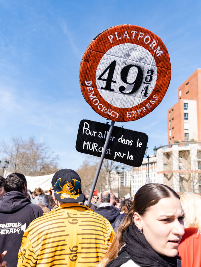 A demonstration as part of a national day of strikes and rallies to protest against a proposed reform to raise the retirement age from 62 to 64. France,Toulouse, 2023-03-28.