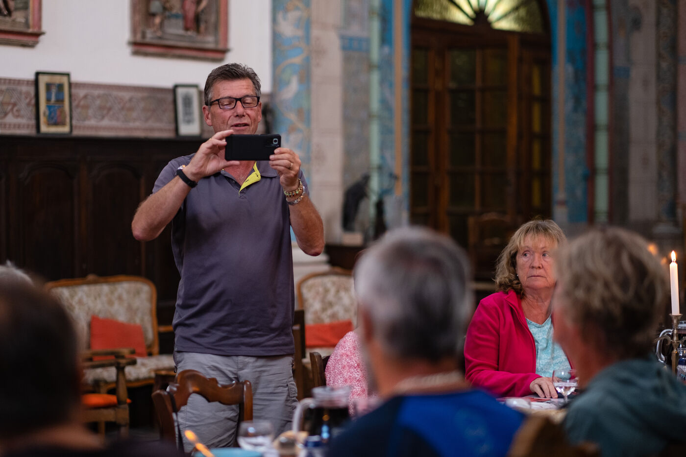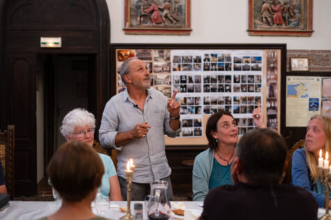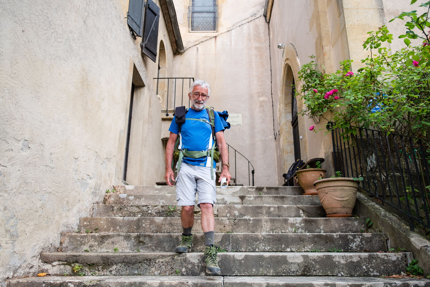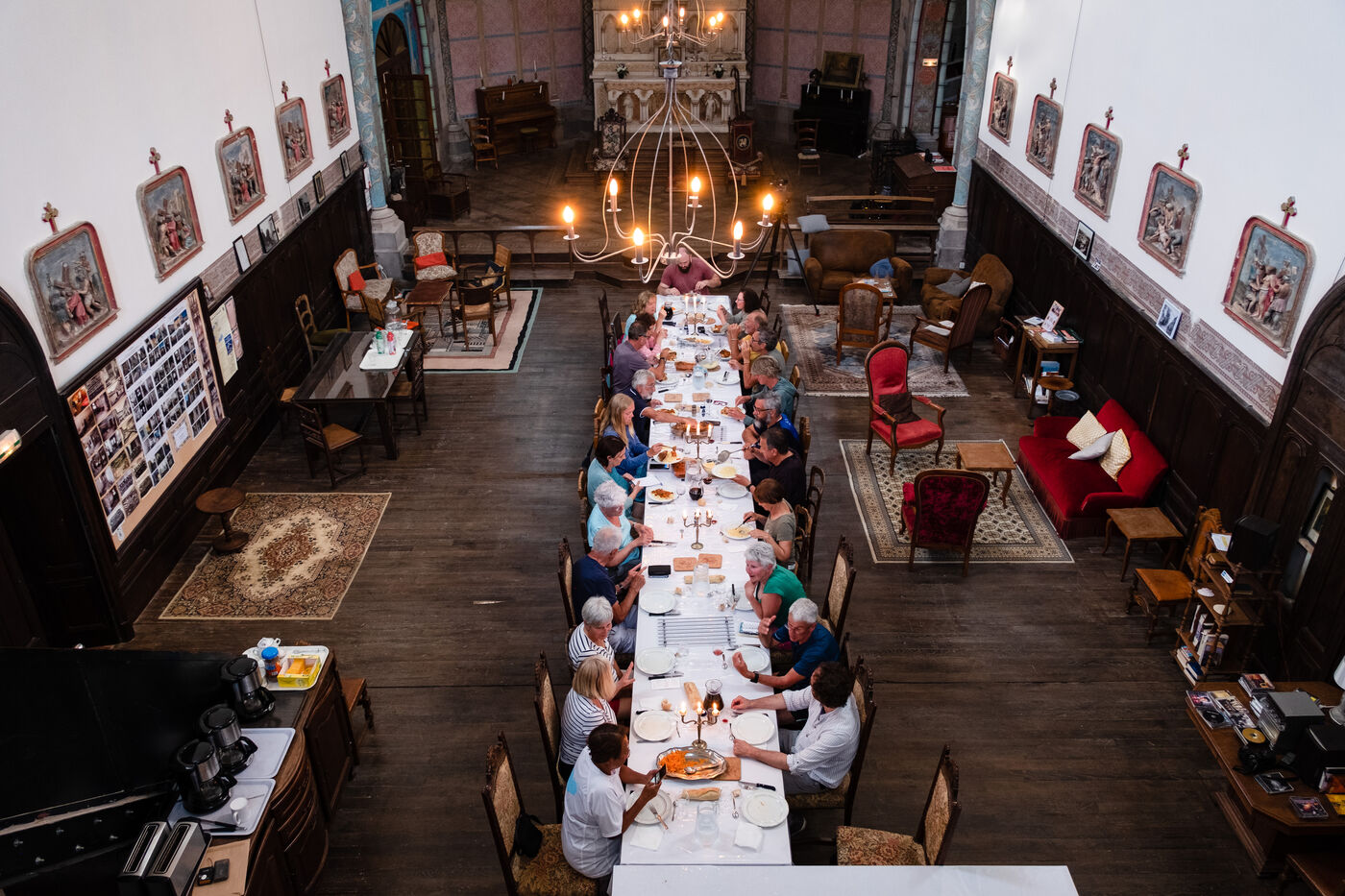 "Marie-Noëlle, who has just dropped off her walking shoes and walking stick at the reception desk of the Ursulines chapel, now converted into a stopover gîte, declares straight away: "This place is a challenge... just as the Pilgrim's Way to Santiago de Compostela is a challenge to us! It's 4pm on this late May afternoon, and the pilgrims are starting to arrive after a final steep climb on the outskirts of Aire-sur-l'Adour (Landes). "You won't have to climb it tomorrow morning," Didier Jouaret kindly consoles the out-of-breath pilgrims. He is the proud owner of this chapel, which once belonged to the teaching order of Ursuline nuns but was desecrated in 1973, and which he bought from a private individual in 2017. From the moment you enter the north side chapel, splendid nineteenth-century murals draw a trompe-l'?il curtain of blue and gold along the walls.