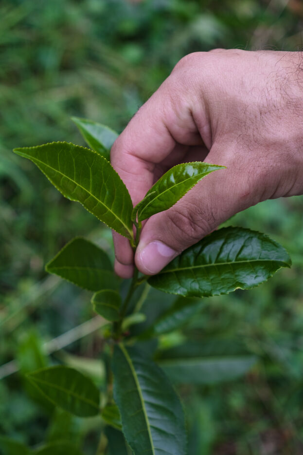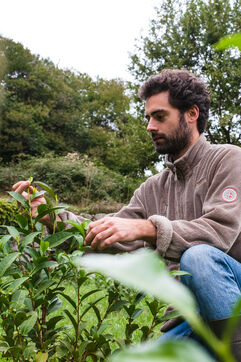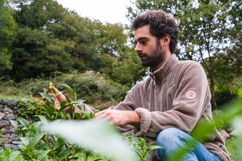 Lucas Ben Moura chose to plant his first tea plants on the hillsides of Argelès-Gazost, on land belonging to his family. This plant from the camellia family adapts well to the climate of the Pyrenees. A graduate of AgroParisTech, the young man first became interested in wine before falling in love with tea. During a gap year in his studies, between 2018 and 2019, he flew to Indonesia, where he carried out two internships. One in a small village and the other in a huge tea plantation. He then went on to Laos and China. There he studied tea growing at close quarters and refined his knowledge. Just before leaving for Asia, he had planted around thirty plants on neglected family meadows, previously occupied by farmers who had since retired. With no idea of what to expect, these first plants made it through the winter.