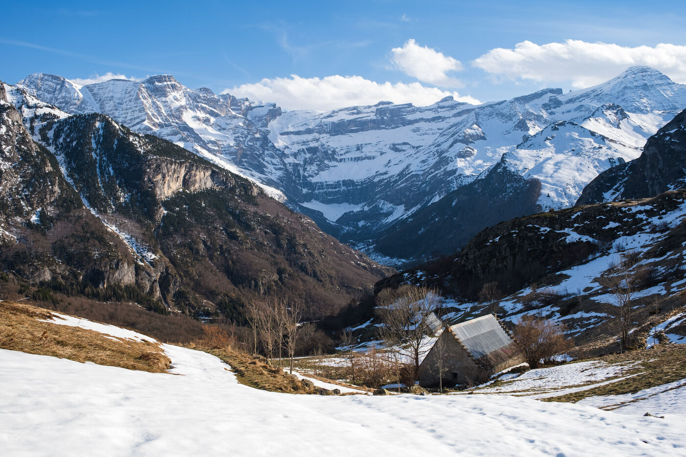 The majestic Cirque de Gavarnie in transition from winter to spring.